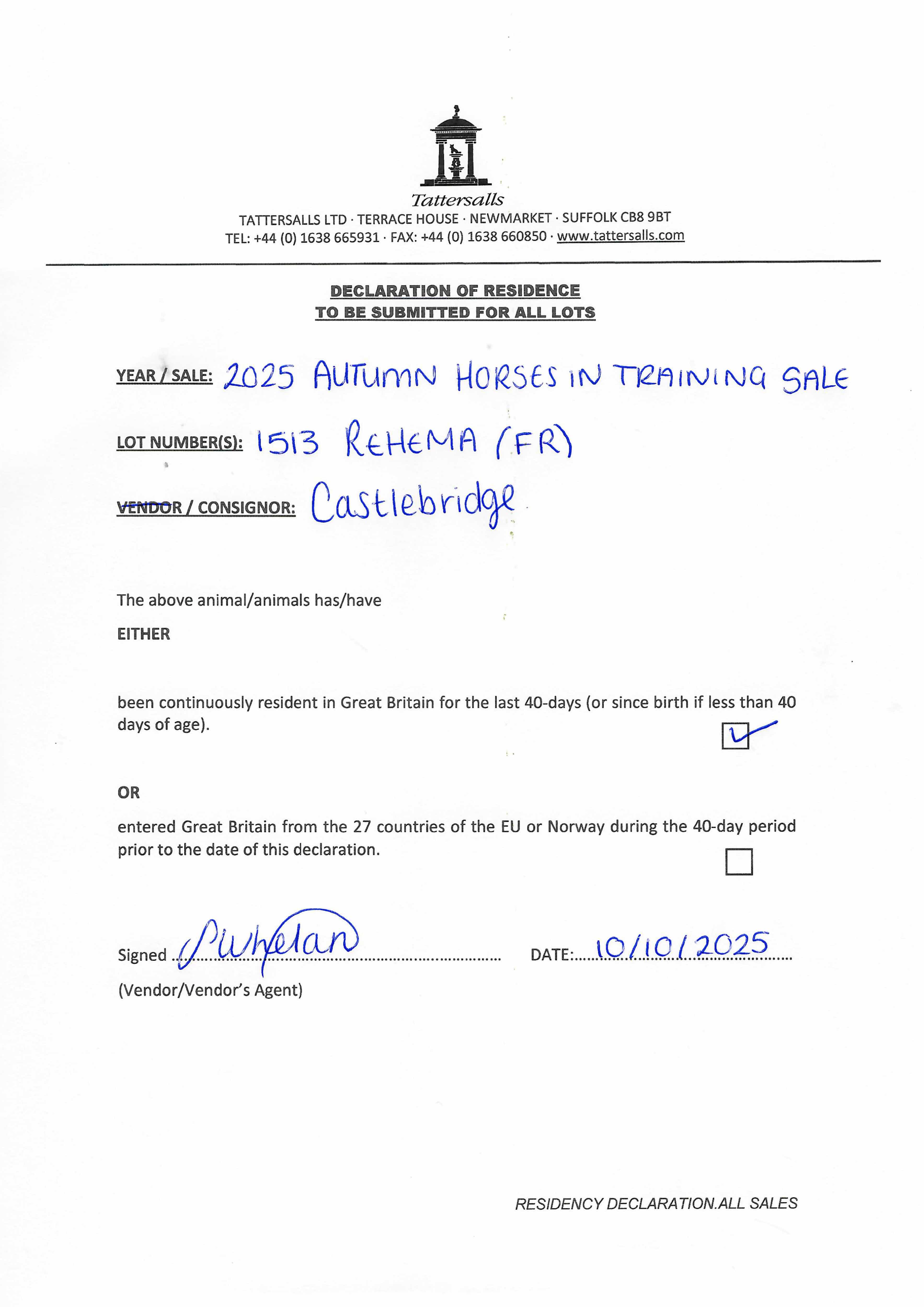 Consignor: The Castlebridge Consignment