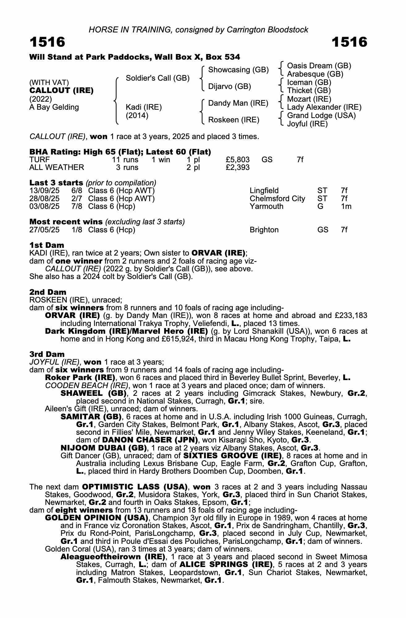 Consignor: Carrington Bloodstock