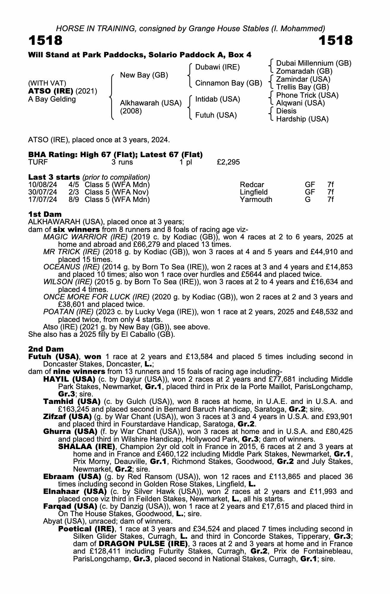 Consignor: Grange House Stables (I. Mohammed)