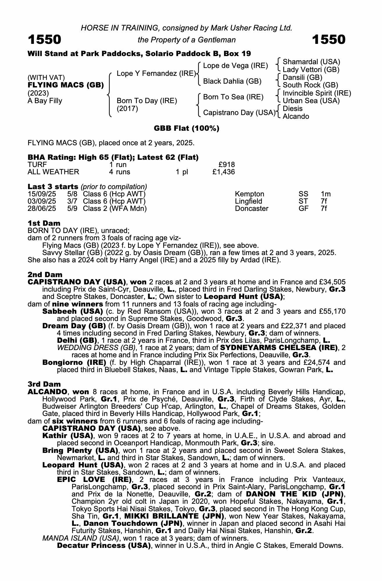 Autumn Horses In Training Sale 2025 lot 805 Savvy Stellar (GB) (G. by Oasis Dream (GB)), Shalfleet Stables (S. Woods)=>Nigel Hawke Racing 20,000 gns