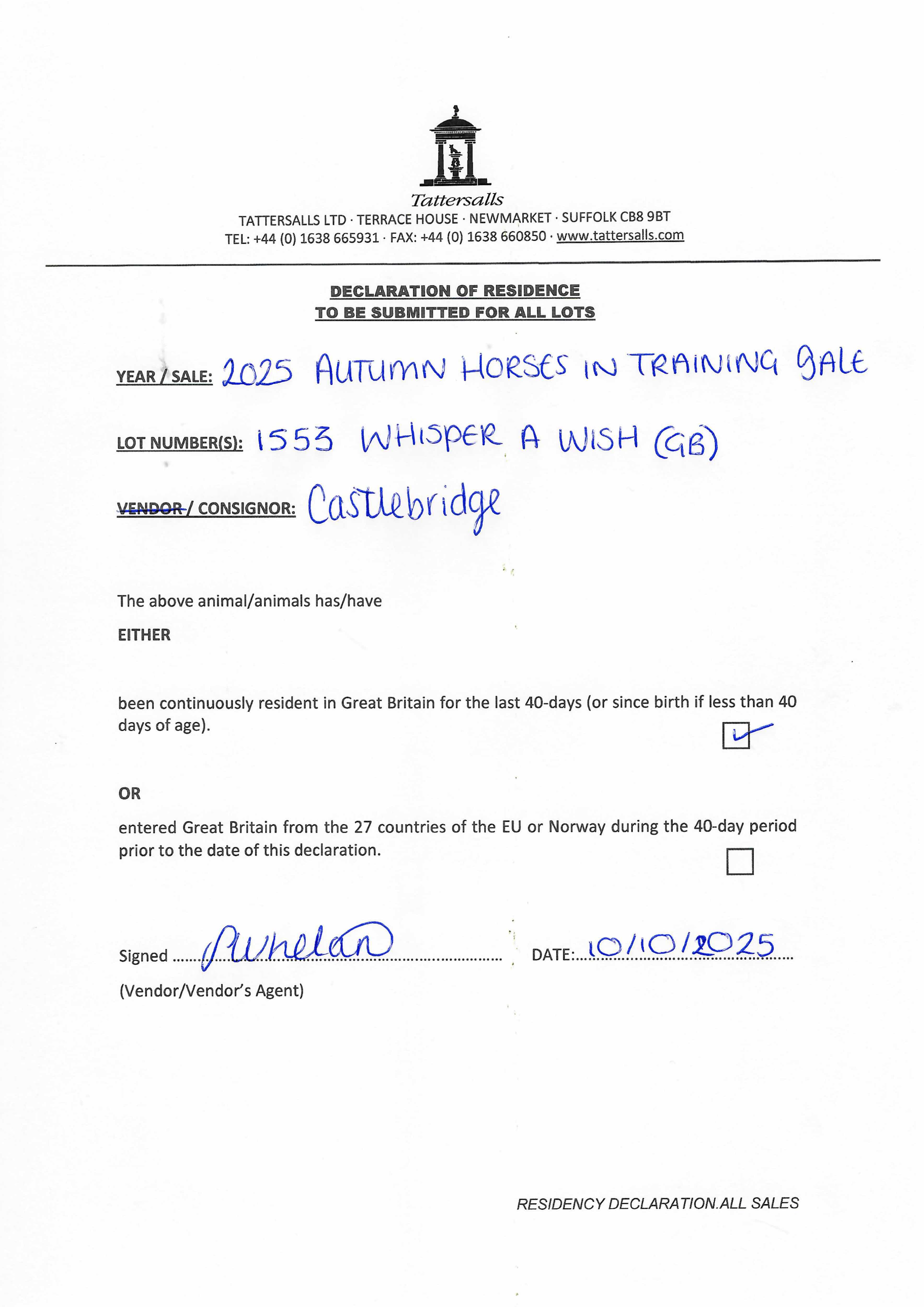 Consignor: The Castlebridge Consignment