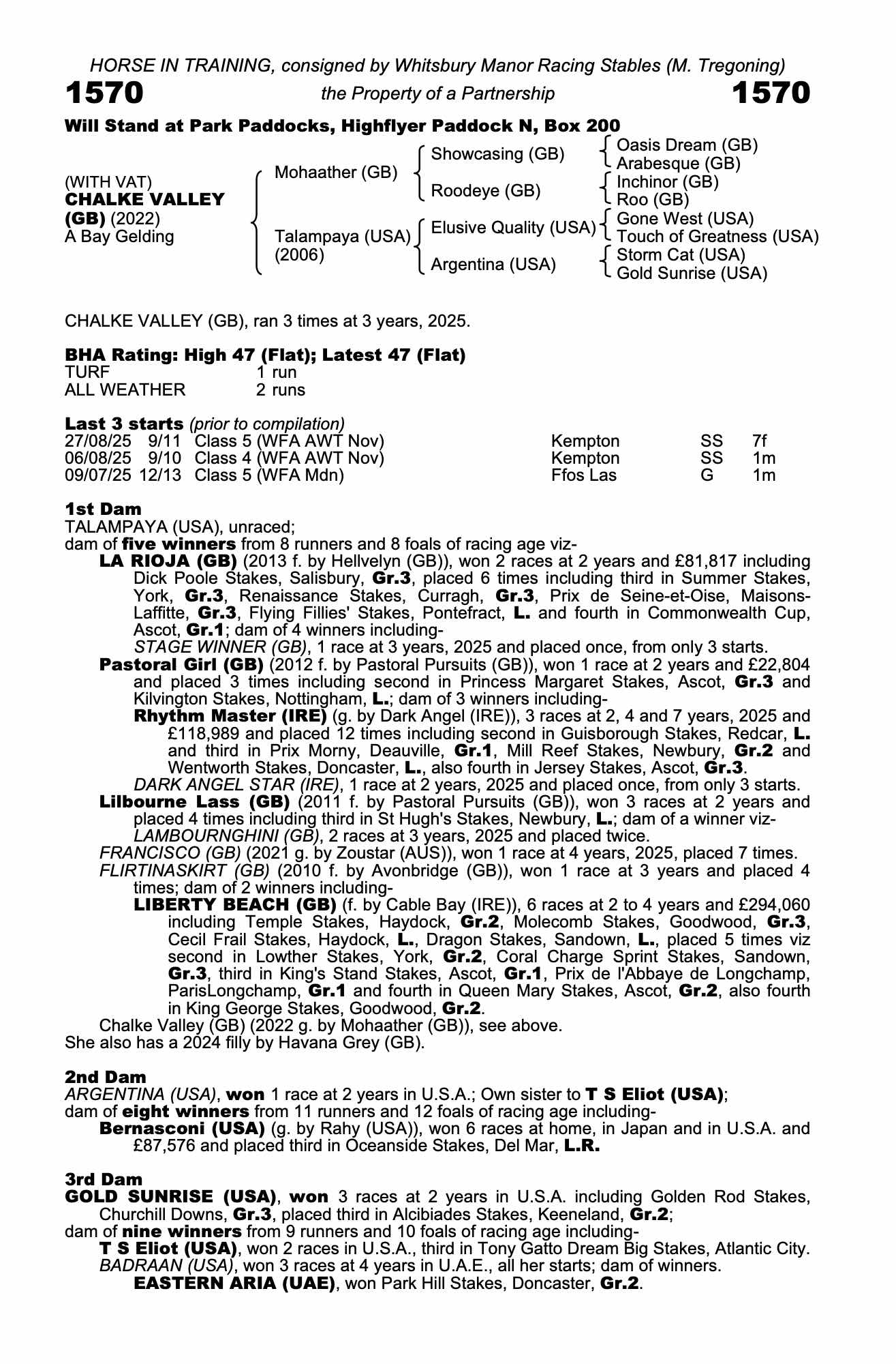 Consignor: Whitsbury Manor Racing Stables (M. Tregoning)