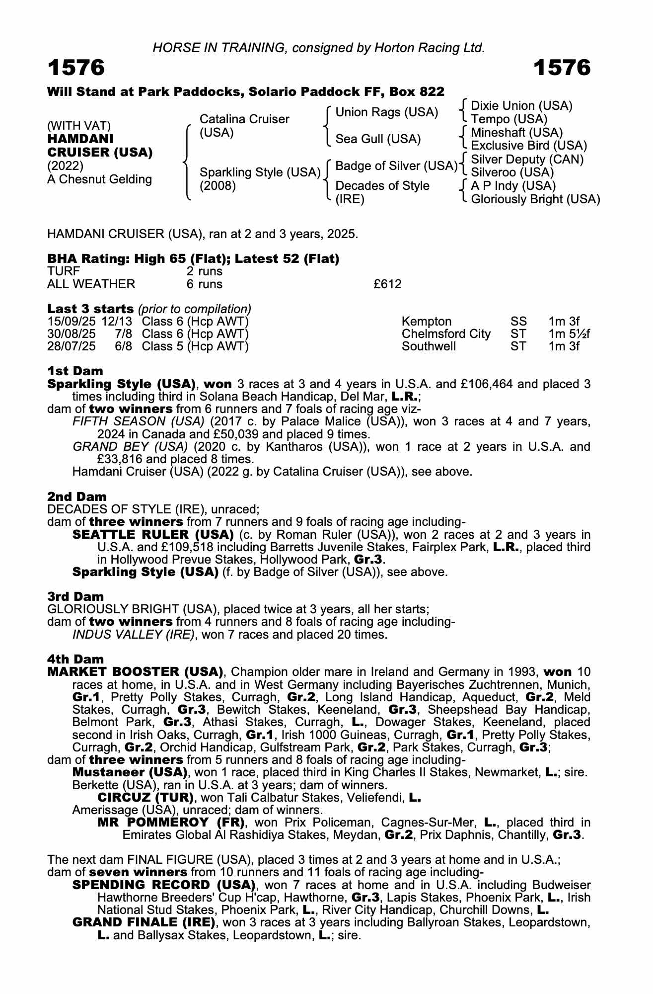 Consignor: Horton Racing Ltd.