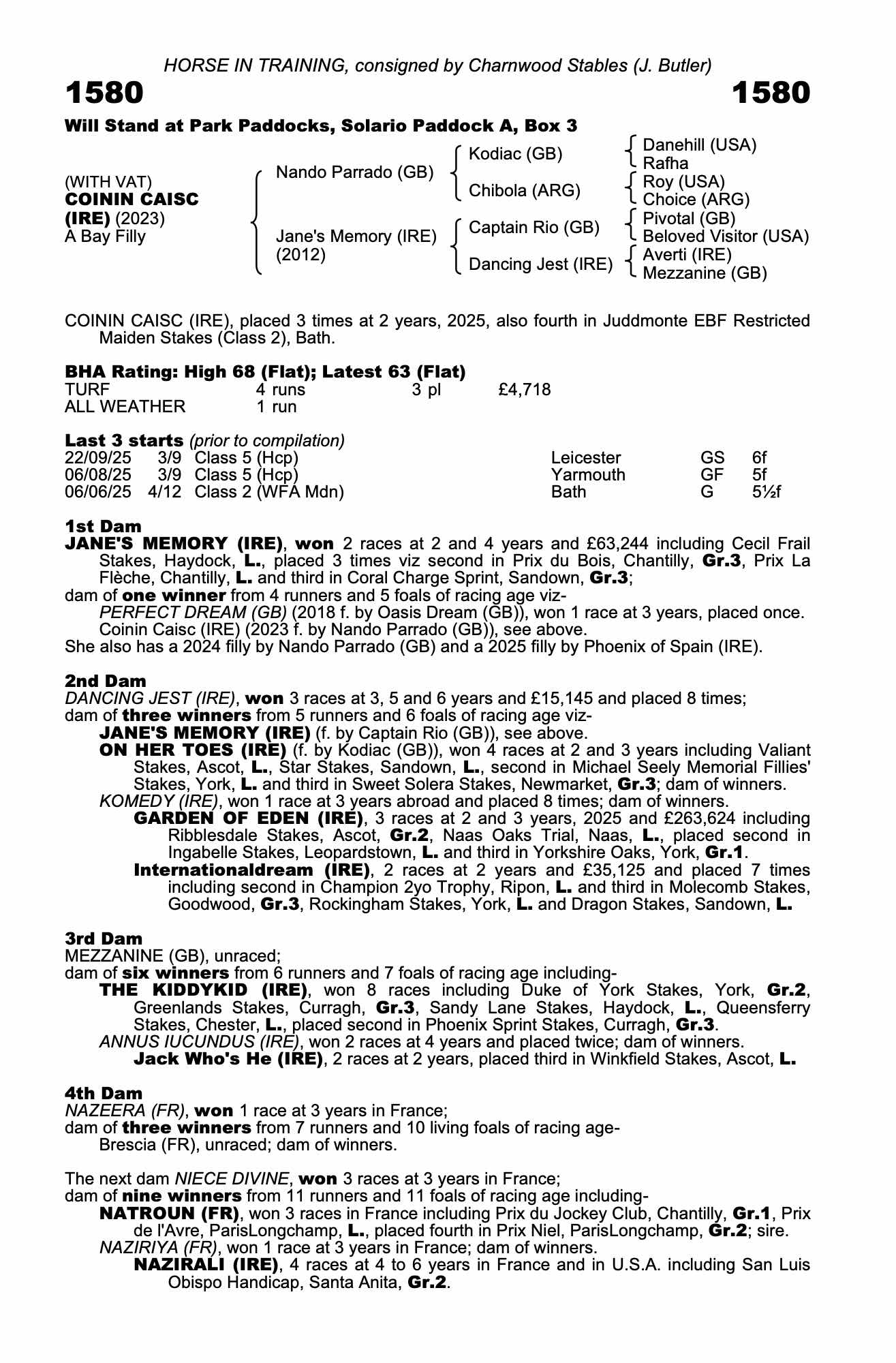 Consignor: Charnwood Stables (J. Butler)
