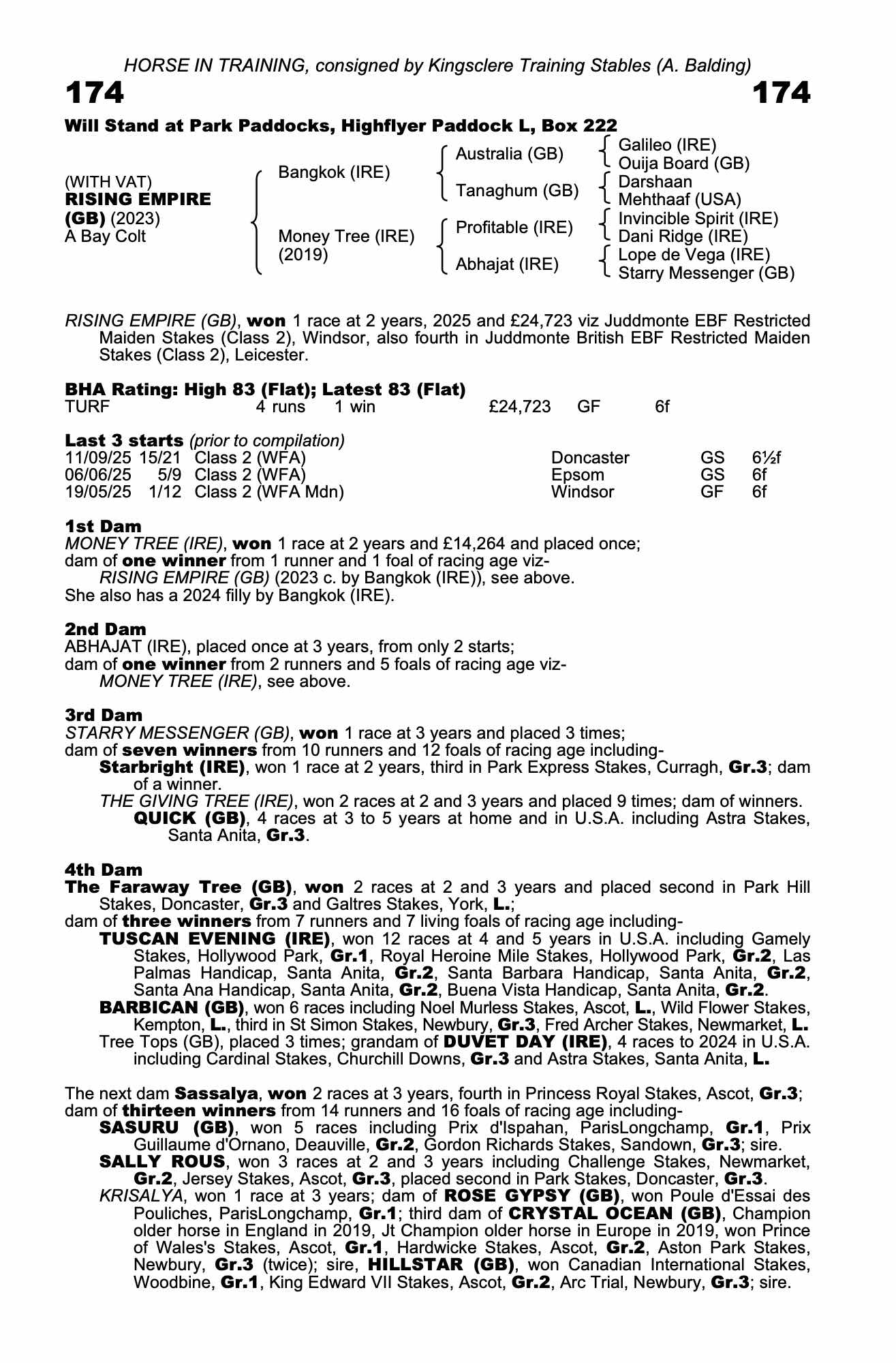 BHA Rating: High 88 (Flat); Latest 88 (Flat)04/10/25 – 3rd of 26 in 7f Class 2 (WFA), Newmarket (G)