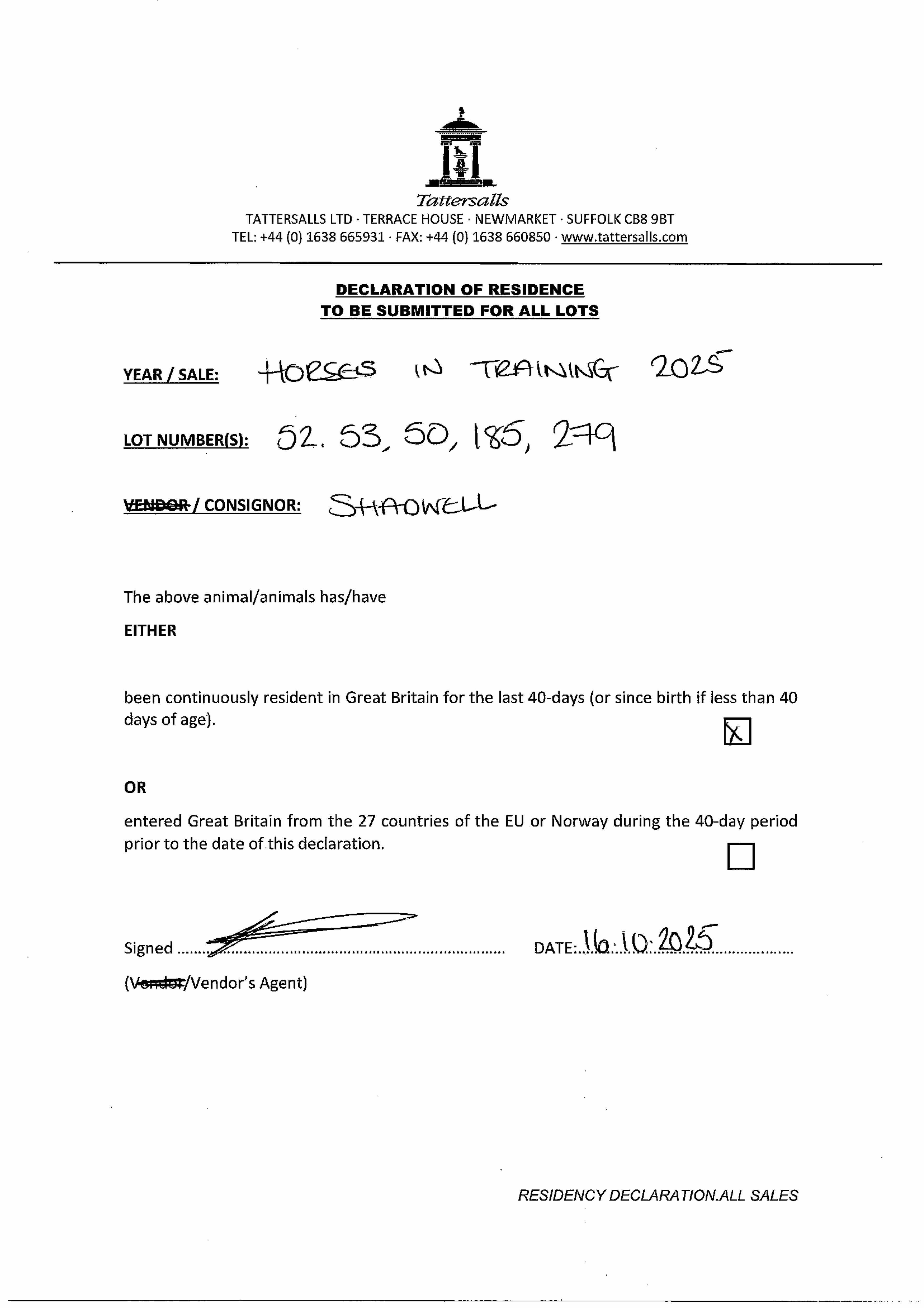 Consignor: Shadwell Estate Company Ltd.