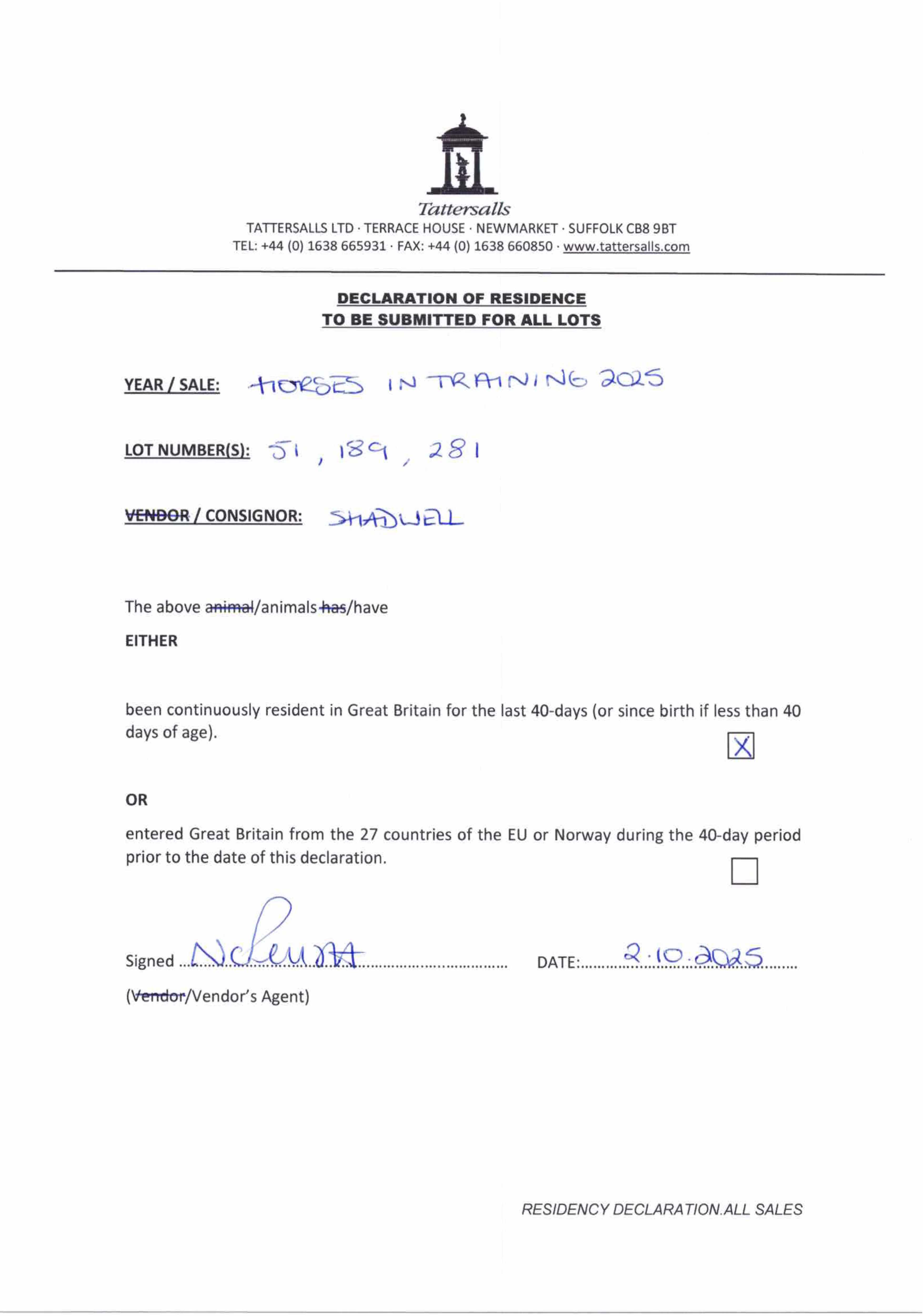 Consignor: Shadwell Estate Company Ltd.
