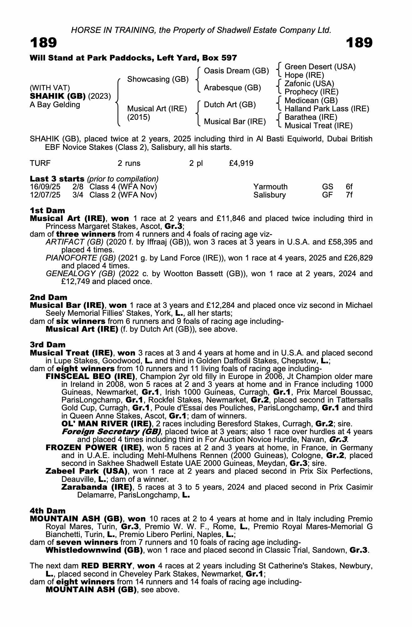Autumn Horses In Training Sale 2025 lot 293 Genealogy (GB) (C. by Wootton Bassett (GB)), Coolmore=>Denis Hogan / Cheeky Pups Syndicate 18,000 gns