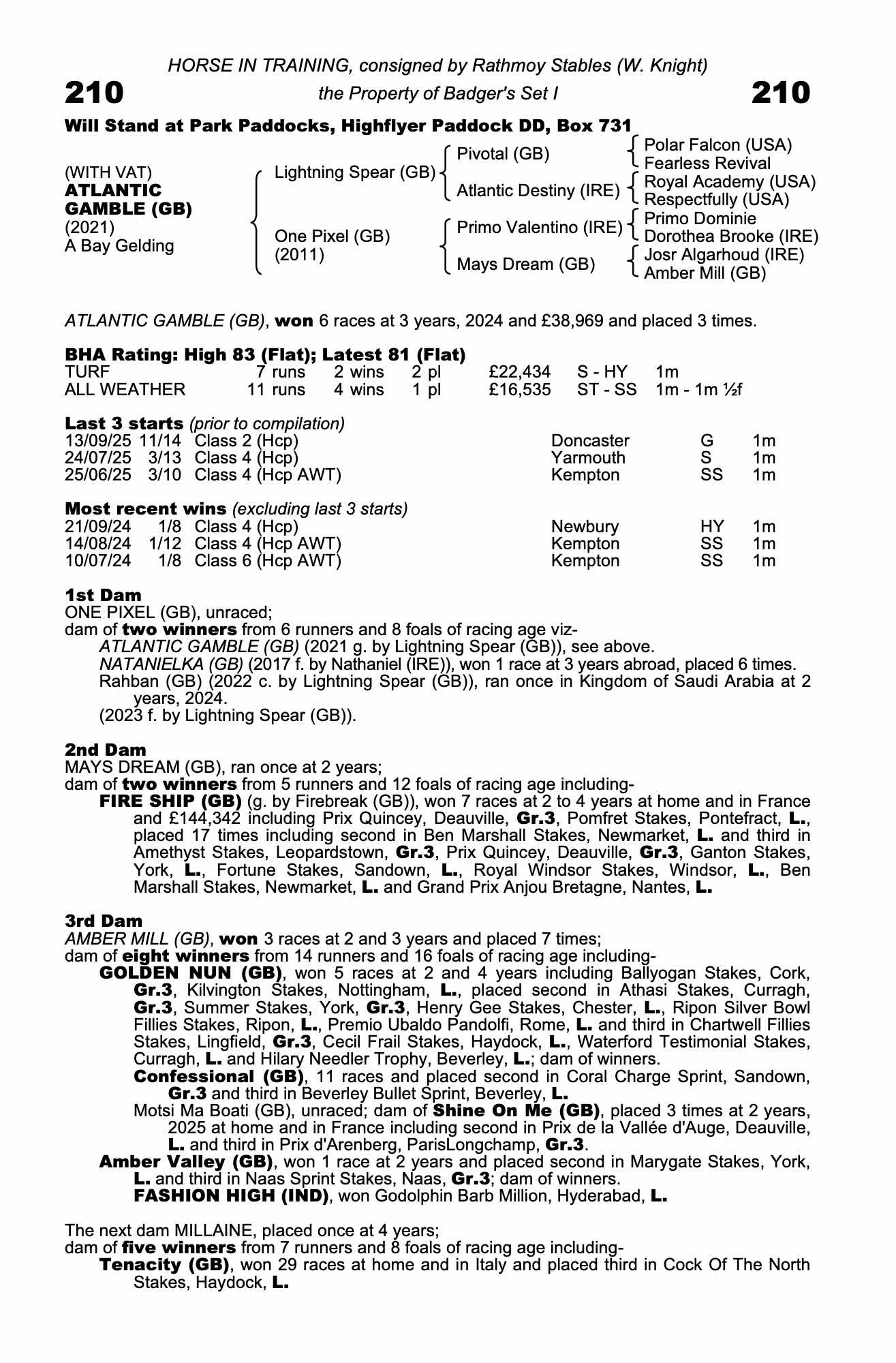Consignor: Rathmoy Stables (W. Knight)