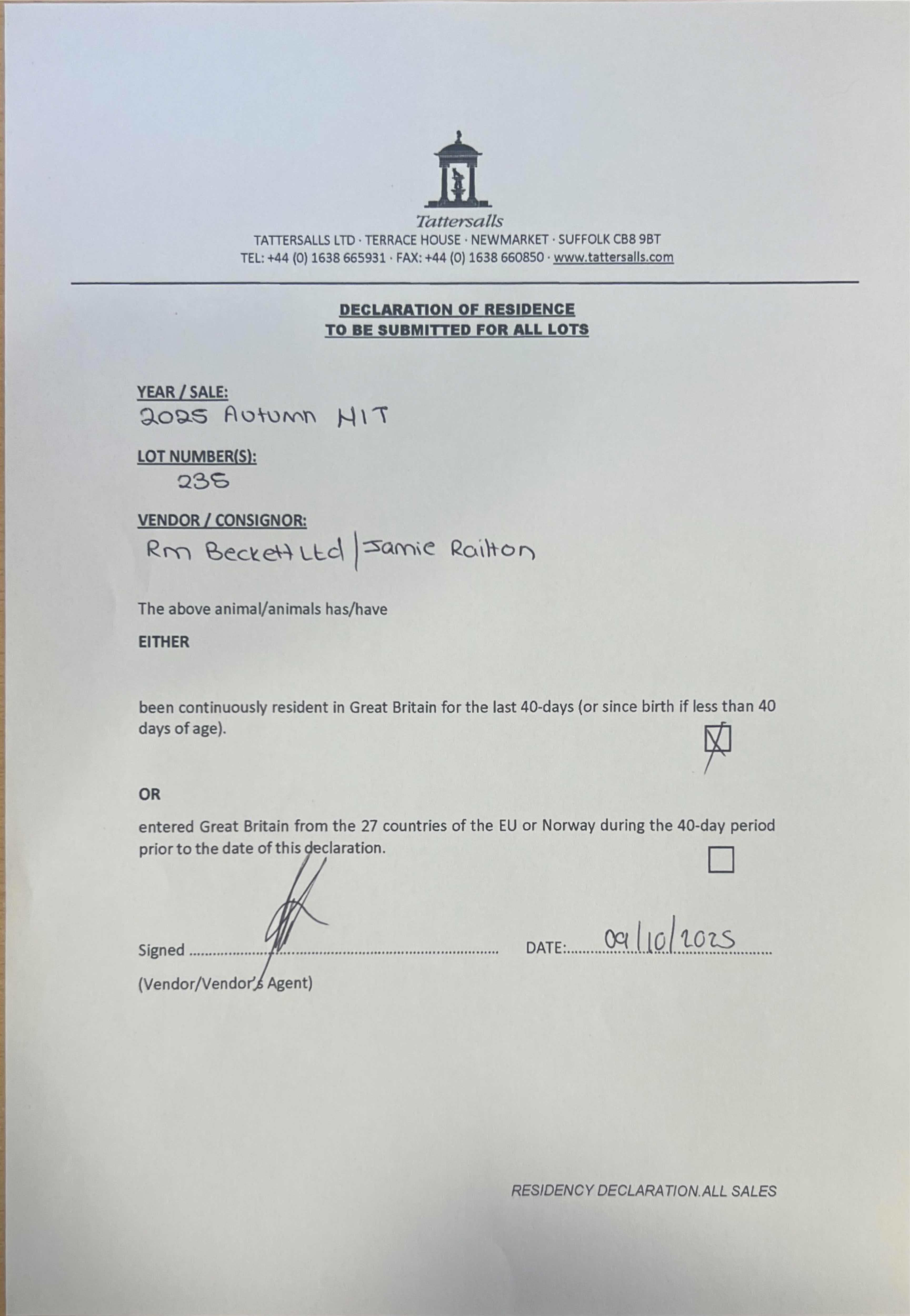 Consignor: Jamie Railton (Agent)