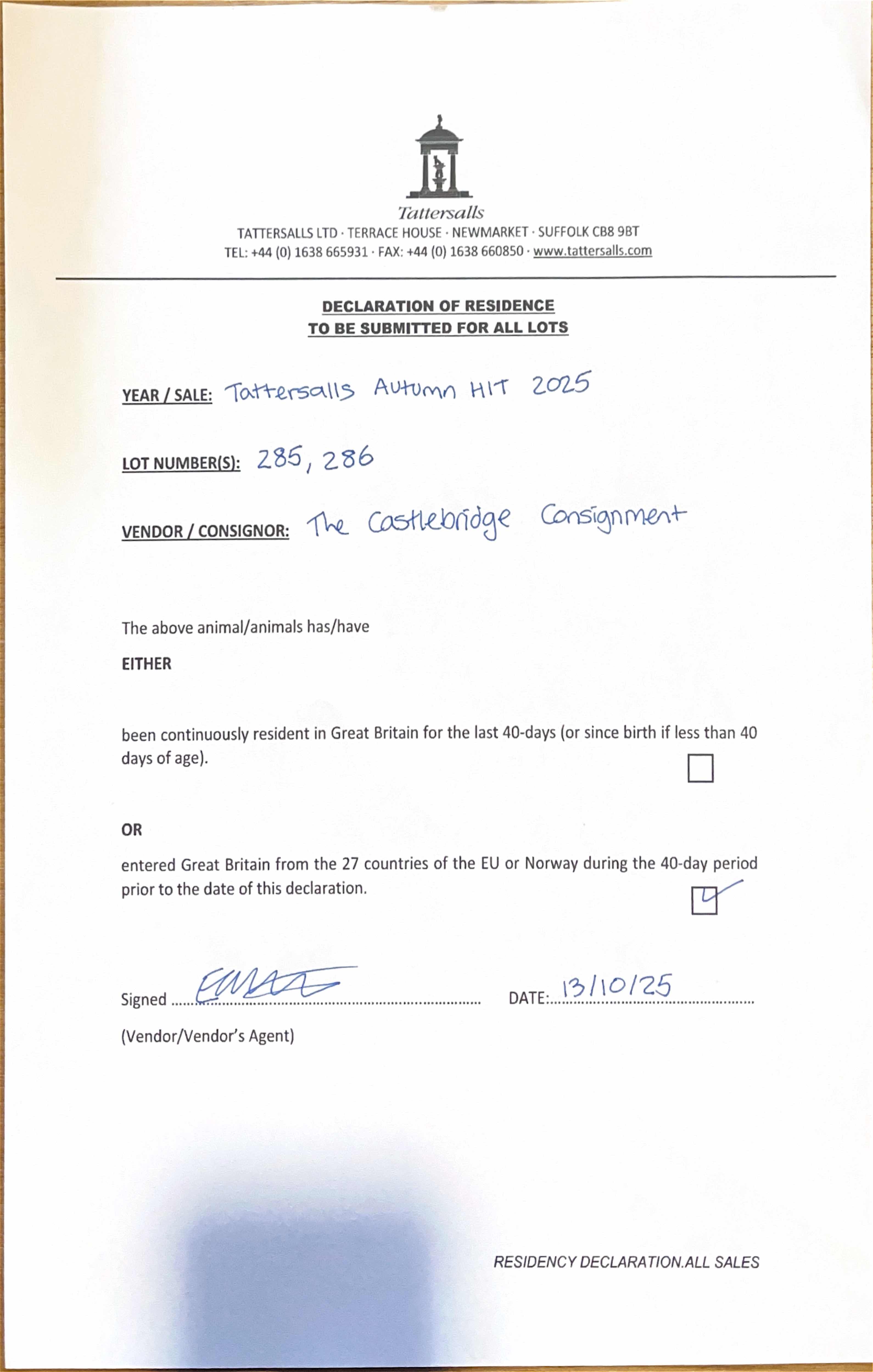 Consignor: The Castlebridge Consignment