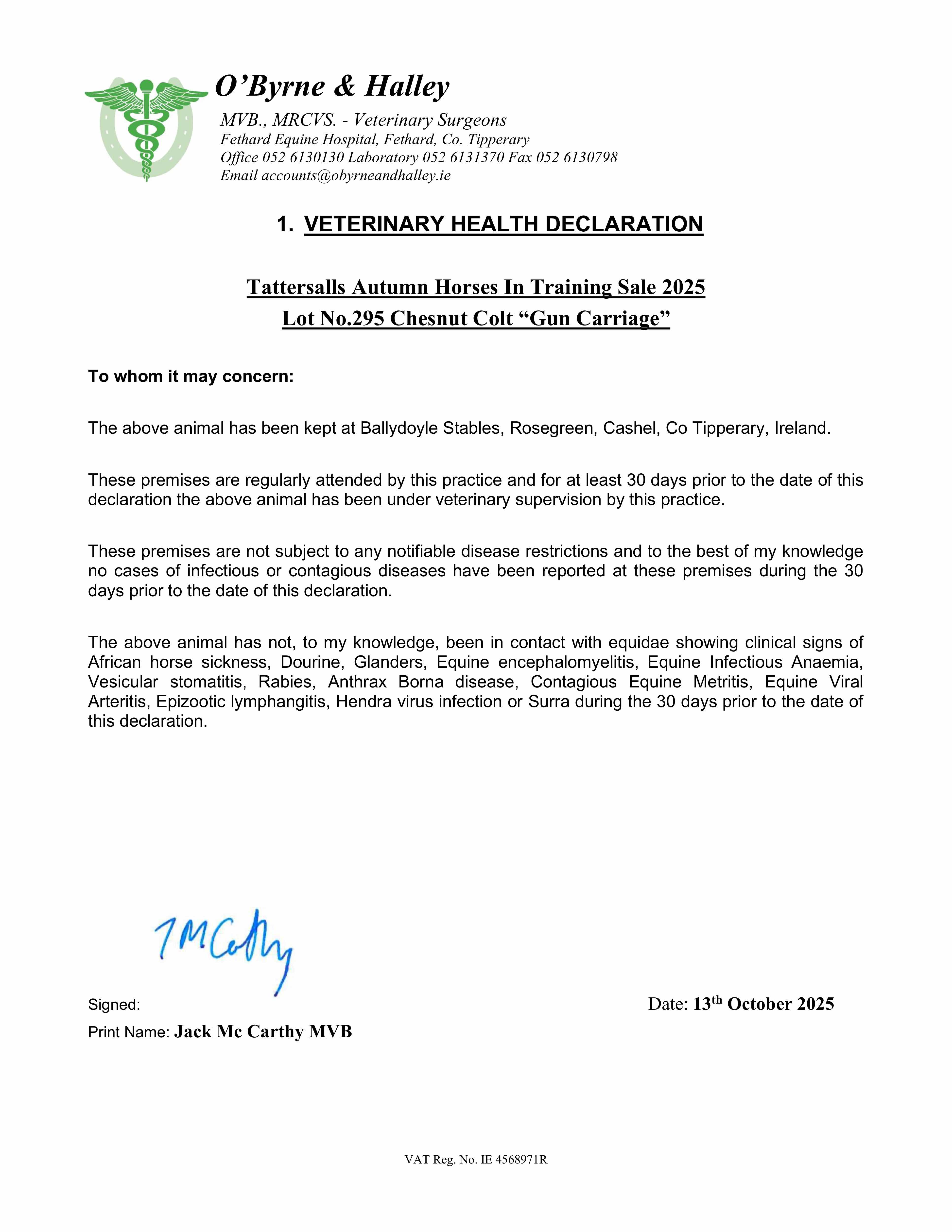 Piroplasmosis Certificate