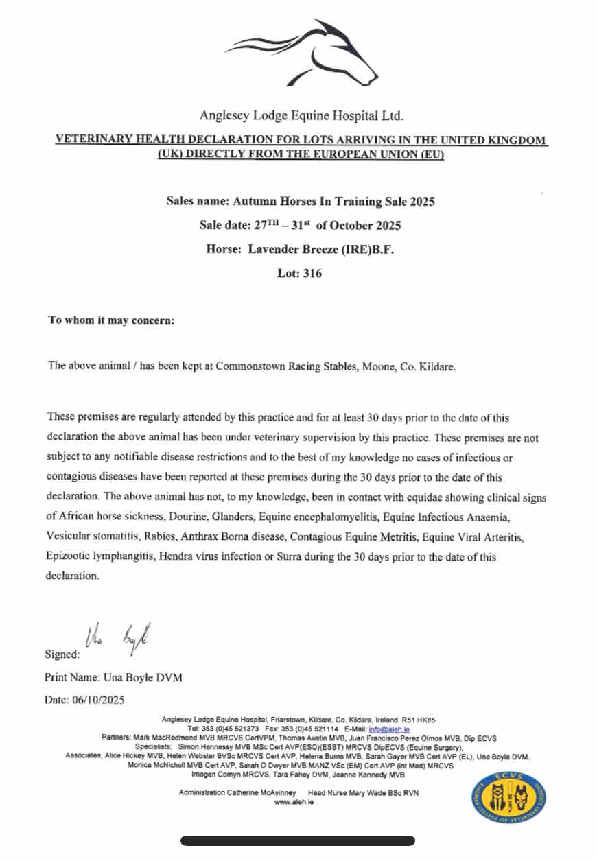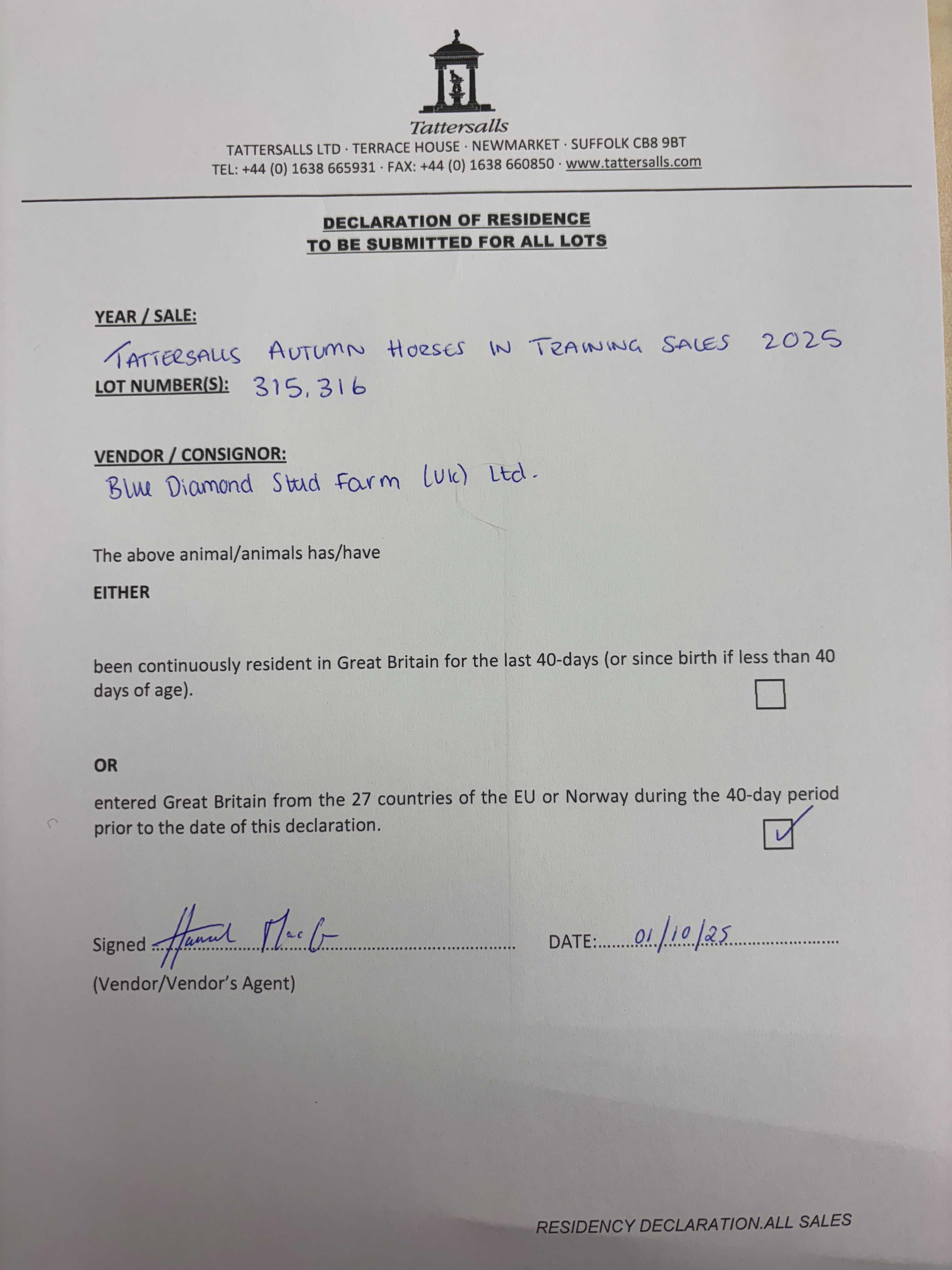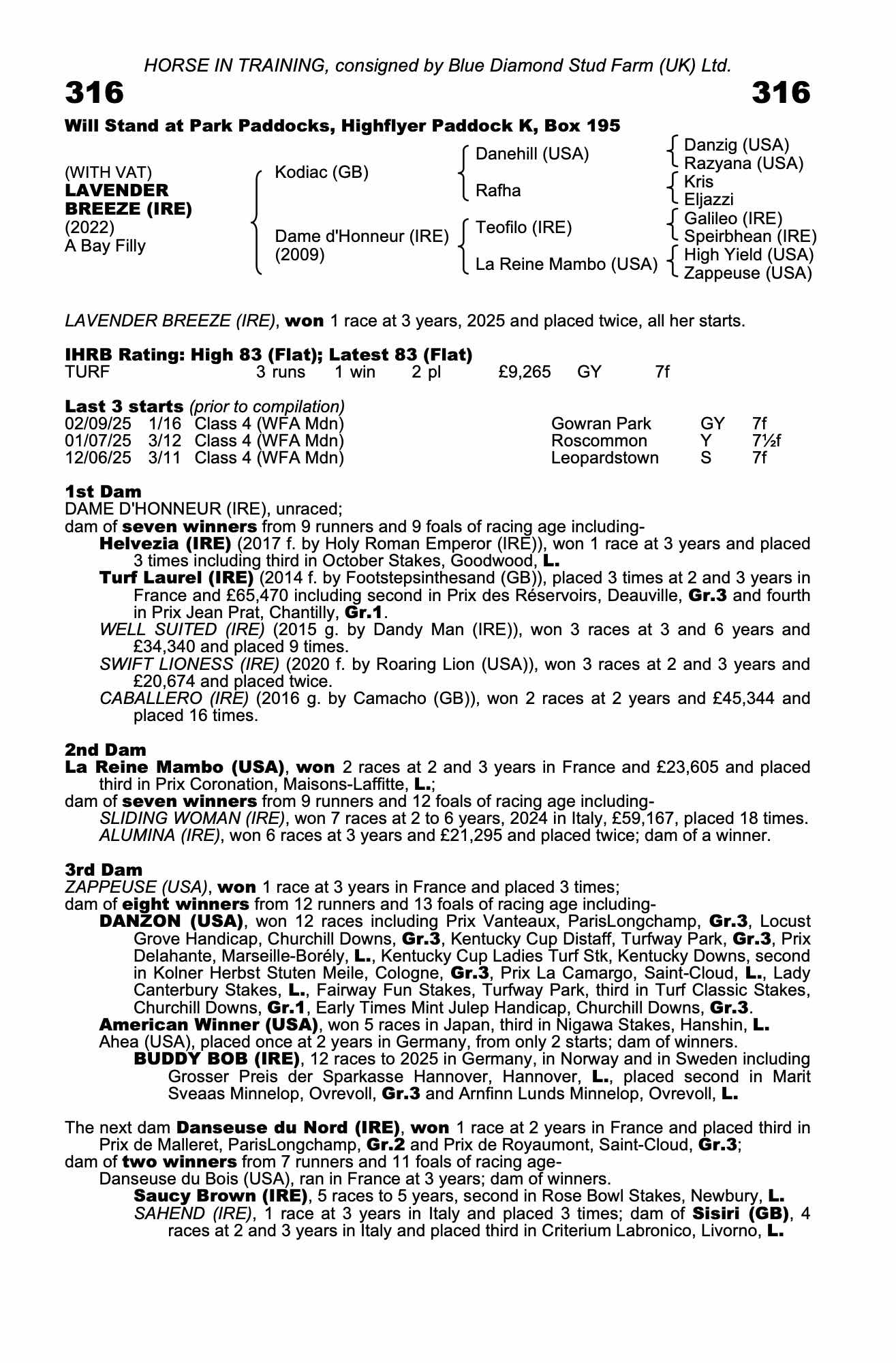 Consignor: Blue Diamond Stud Farm (UK) Ltd.