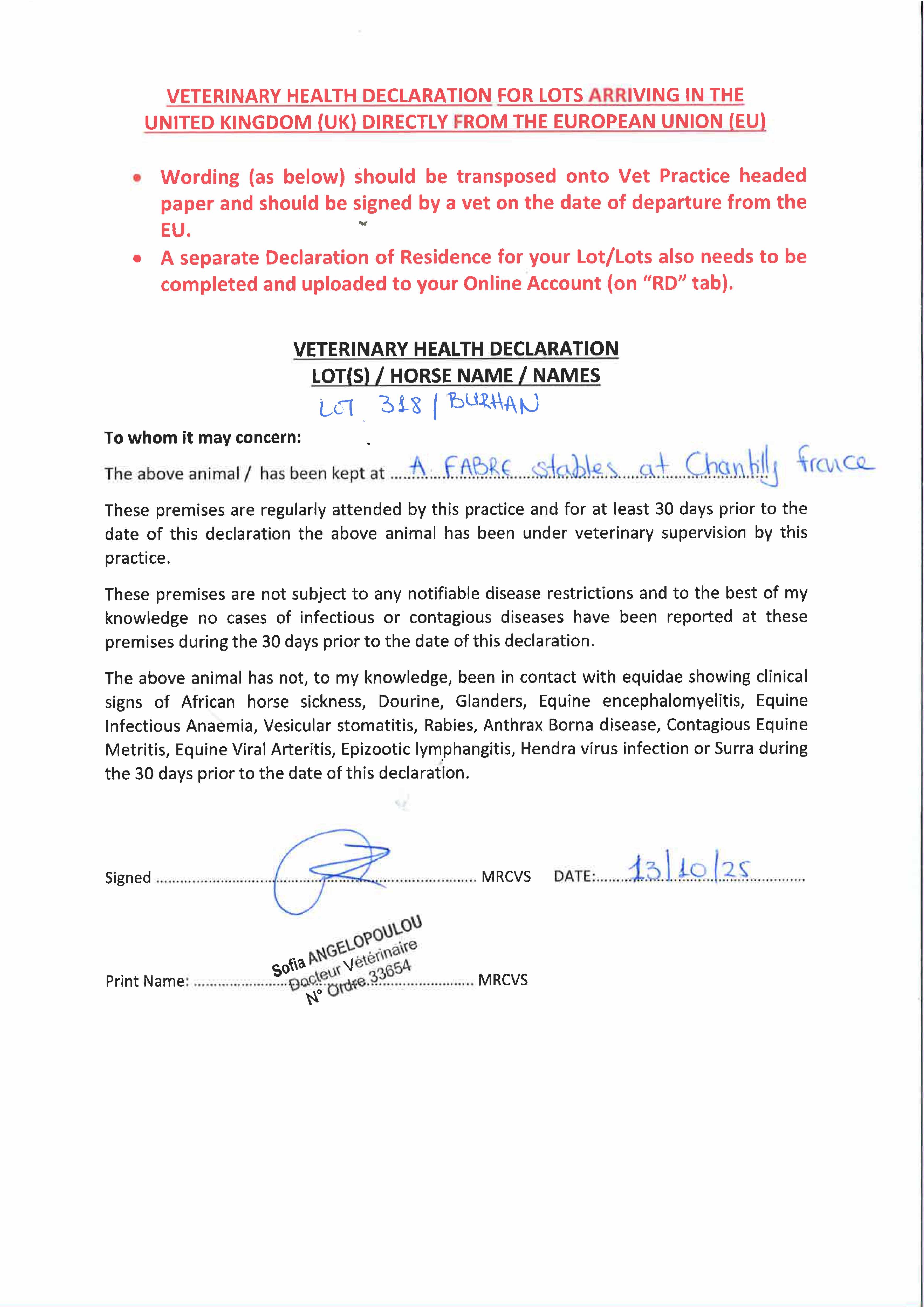Consignor: Blue Diamond Stud Farm (UK) Ltd.
