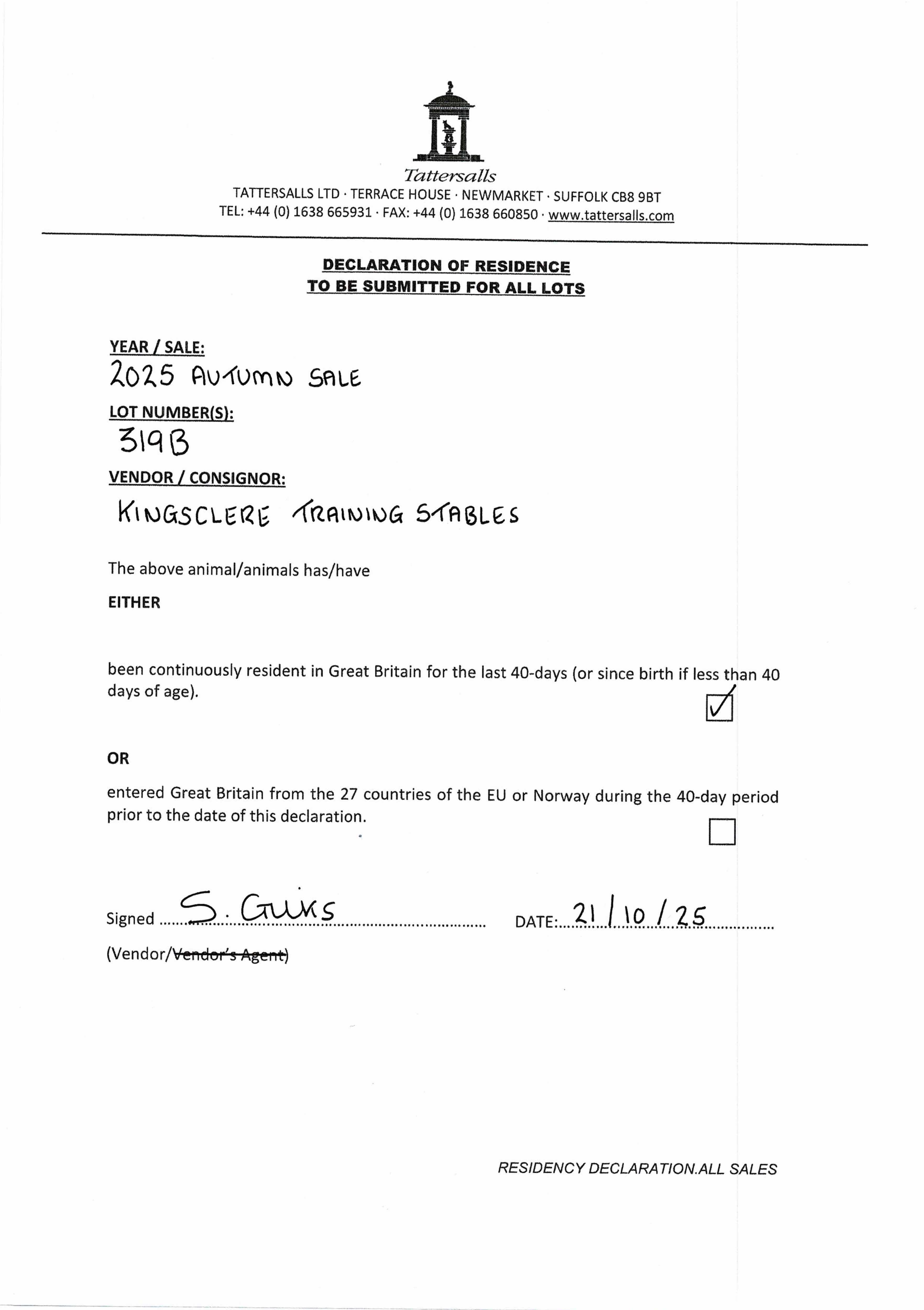 Consignor: Kingsclere Training Stables (A. Balding)