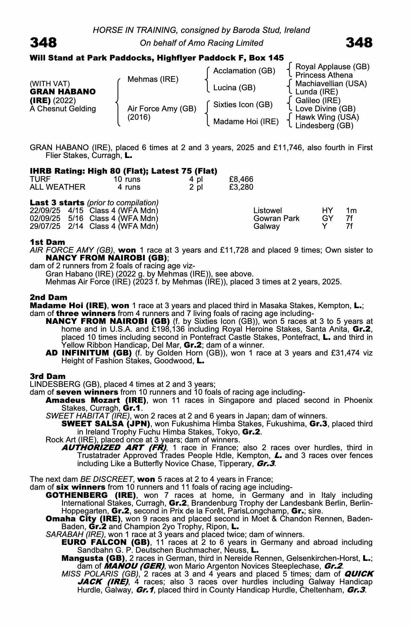 Autumn Horses In Training Sale 2025 lot 1317Mehmas Air Force (IRE) (F.), Weathercock House Stables (R. Hughes)=>Paul Harley Bloodstock / Lennart Reuterskiold18,000 gns