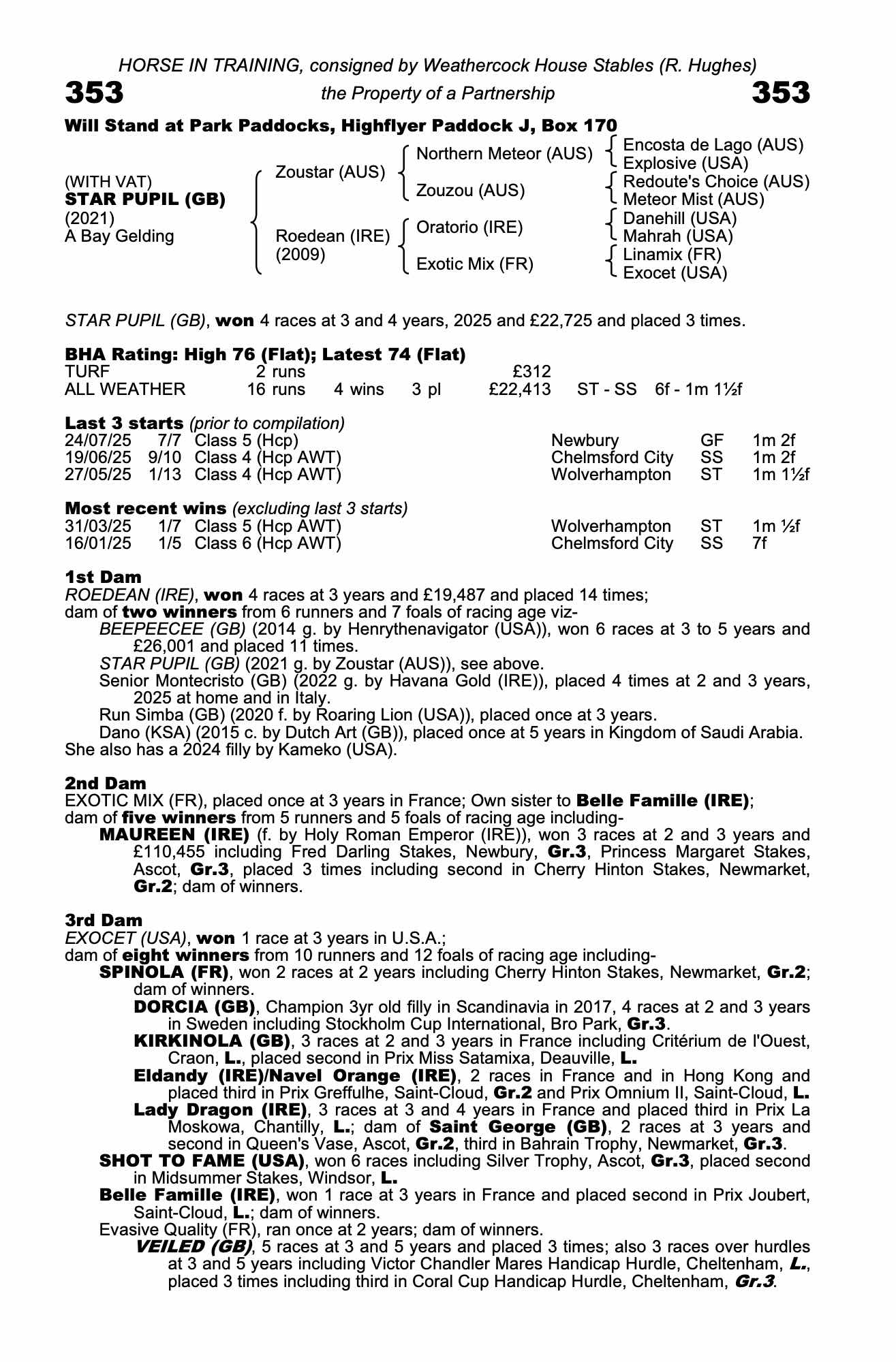 Consignor: Weathercock House Stables (R. Hughes)