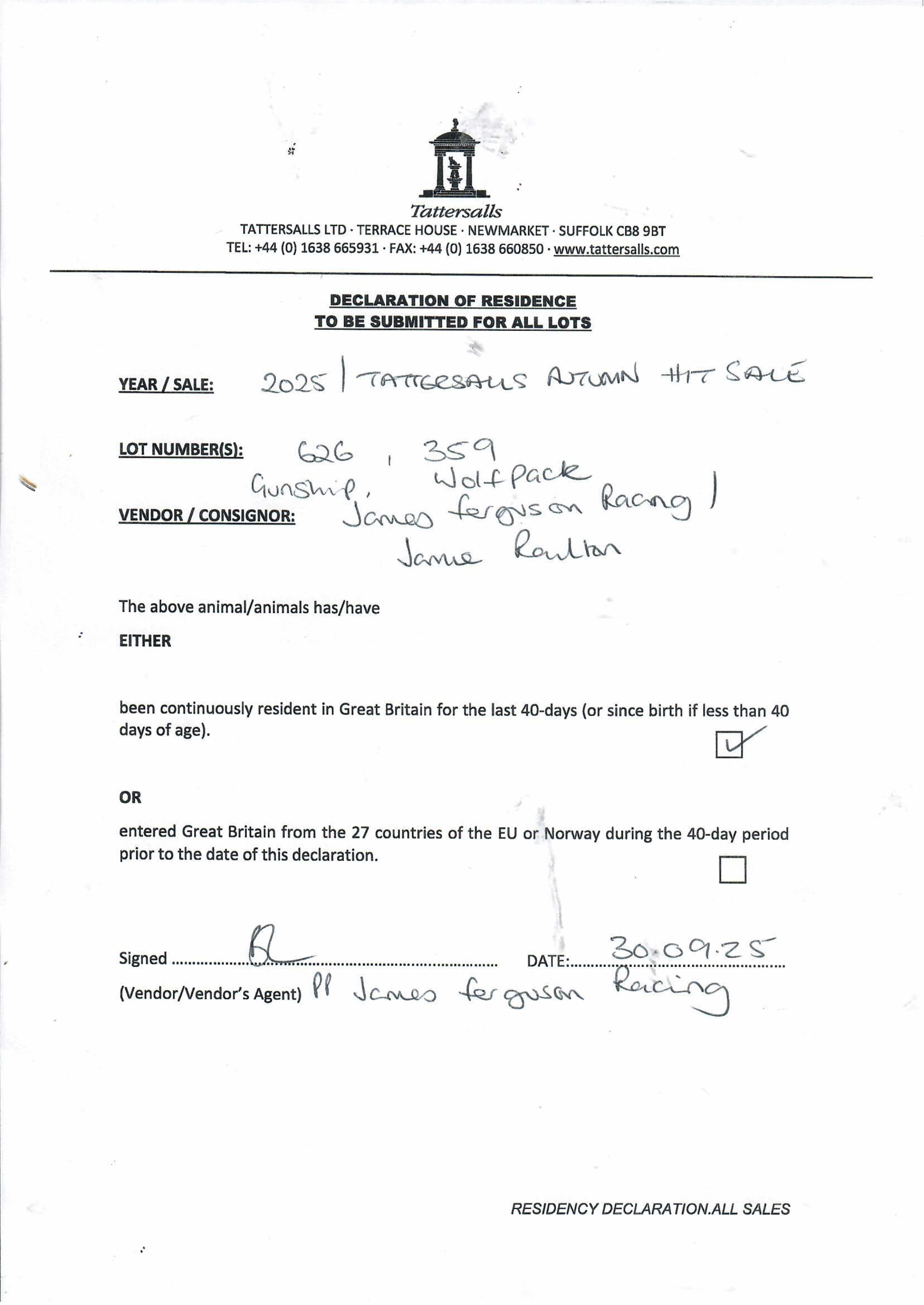 Consignor: Jamie Railton (Agent)