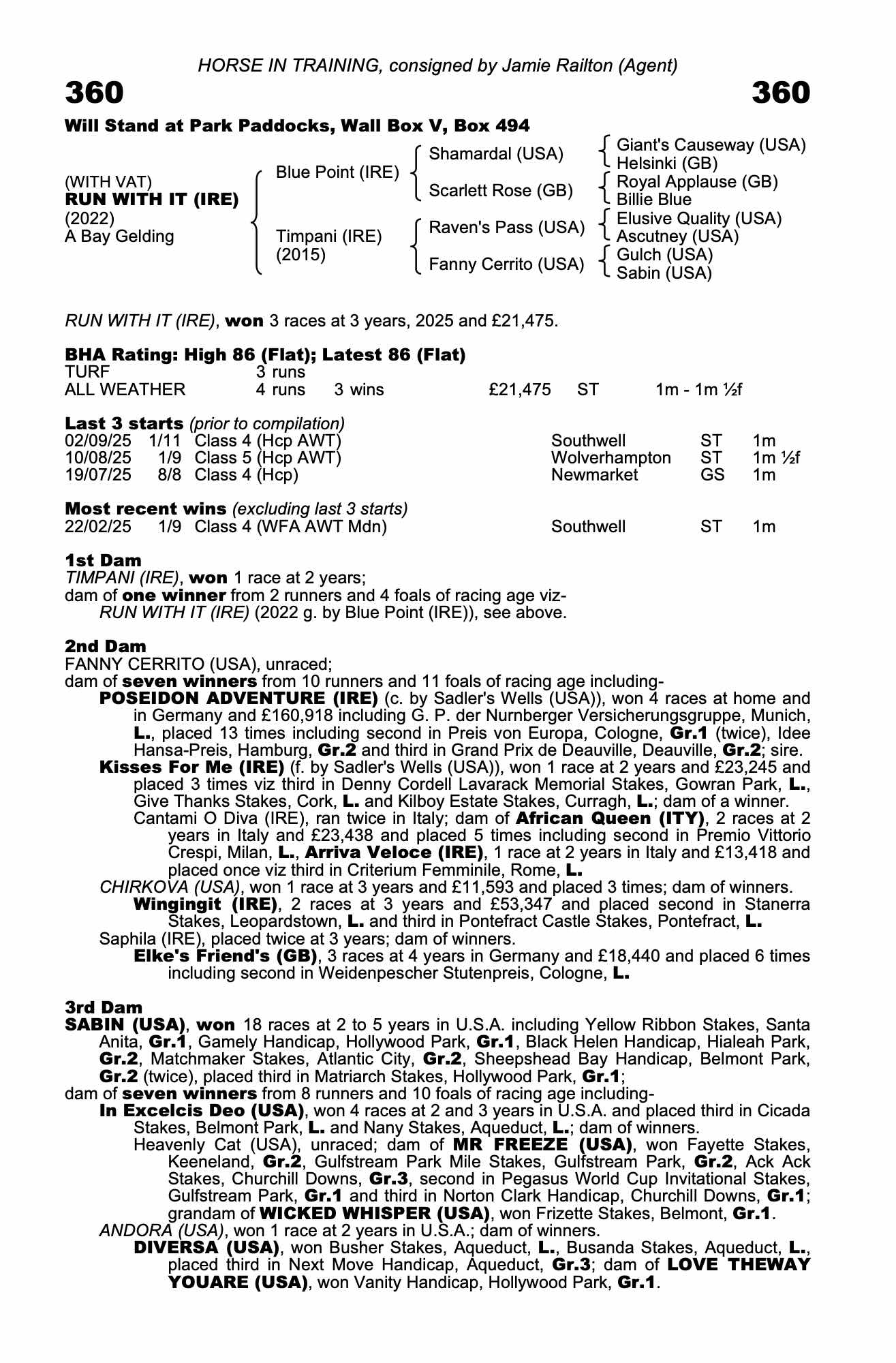 Consignor: Jamie Railton (Agent)