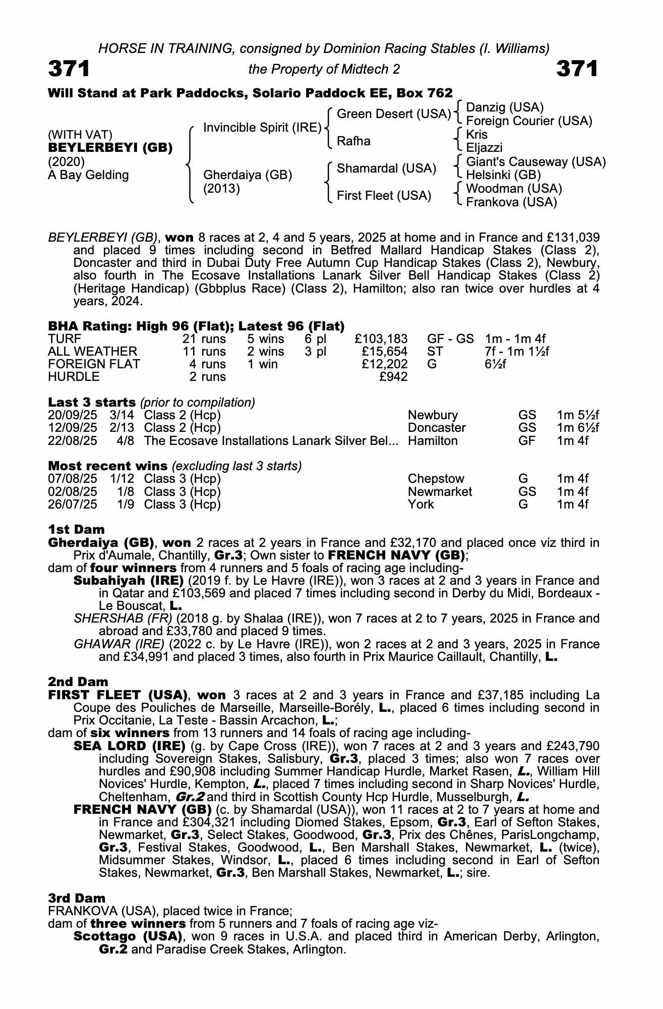 Consignor: Dominion Racing Stables (I. Williams)