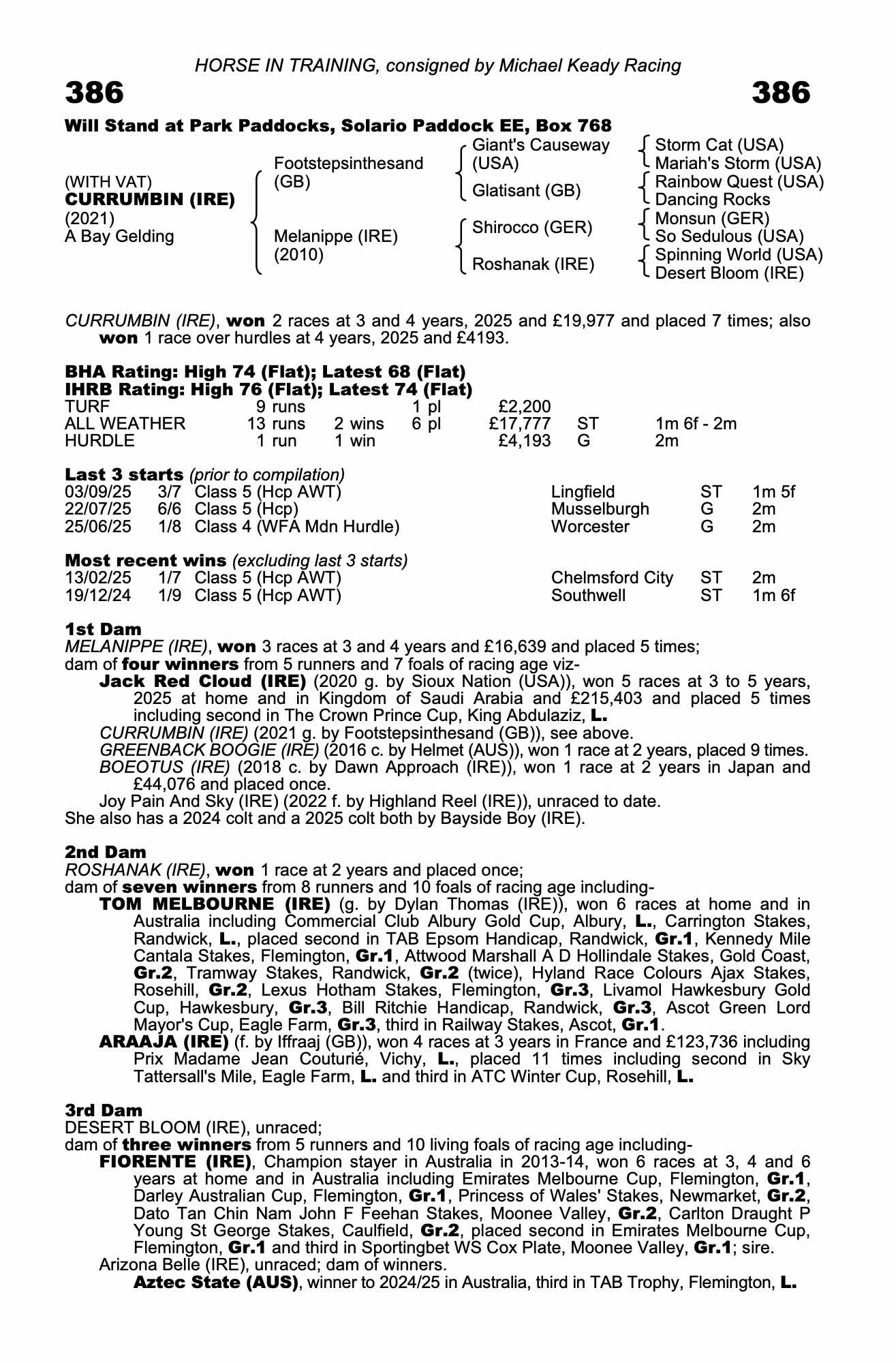 Online Sale - 19th November 2025 lot 83, Michael Keady Racing=>D P O'Dwyer Bloodstock 9,500 gns