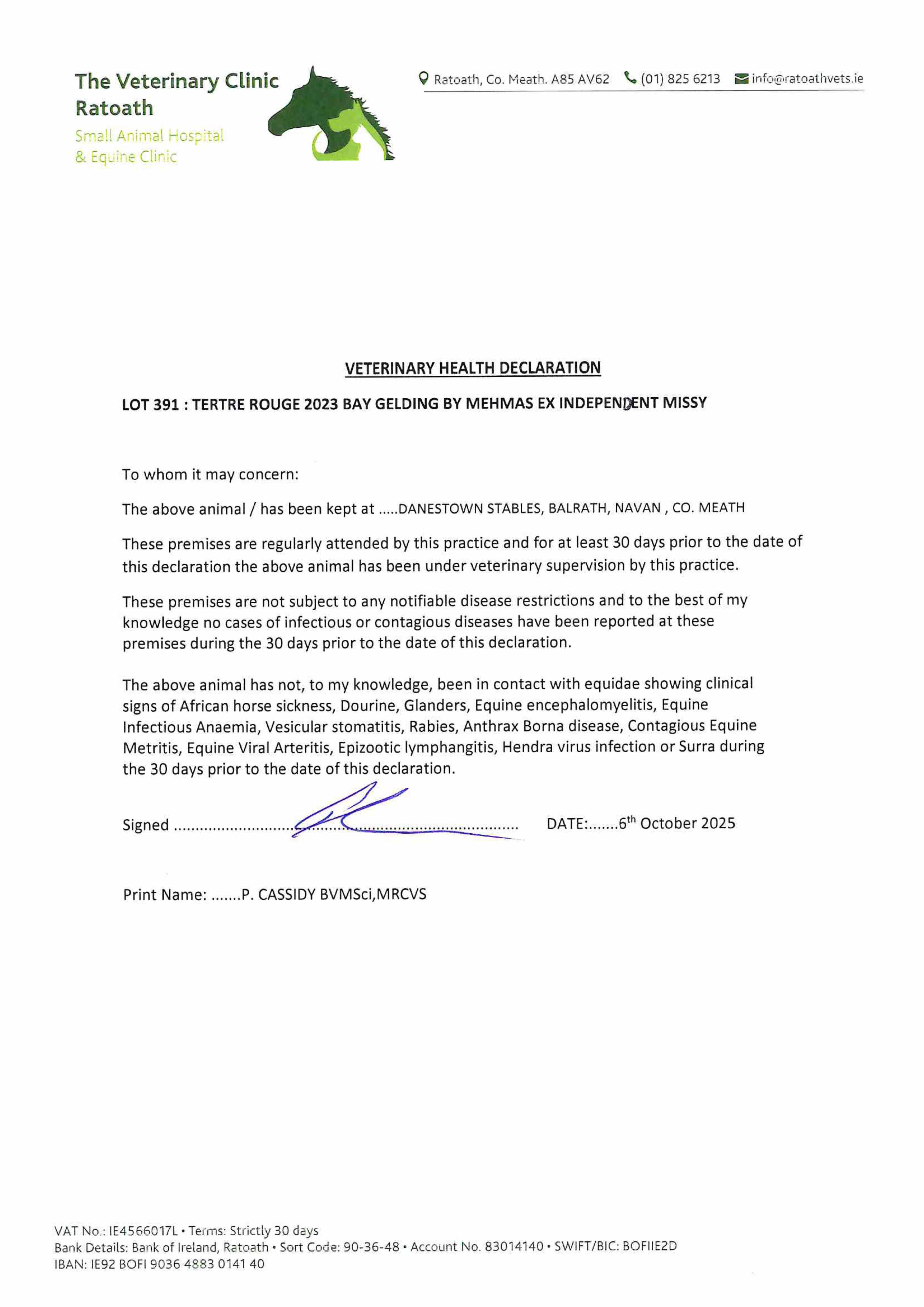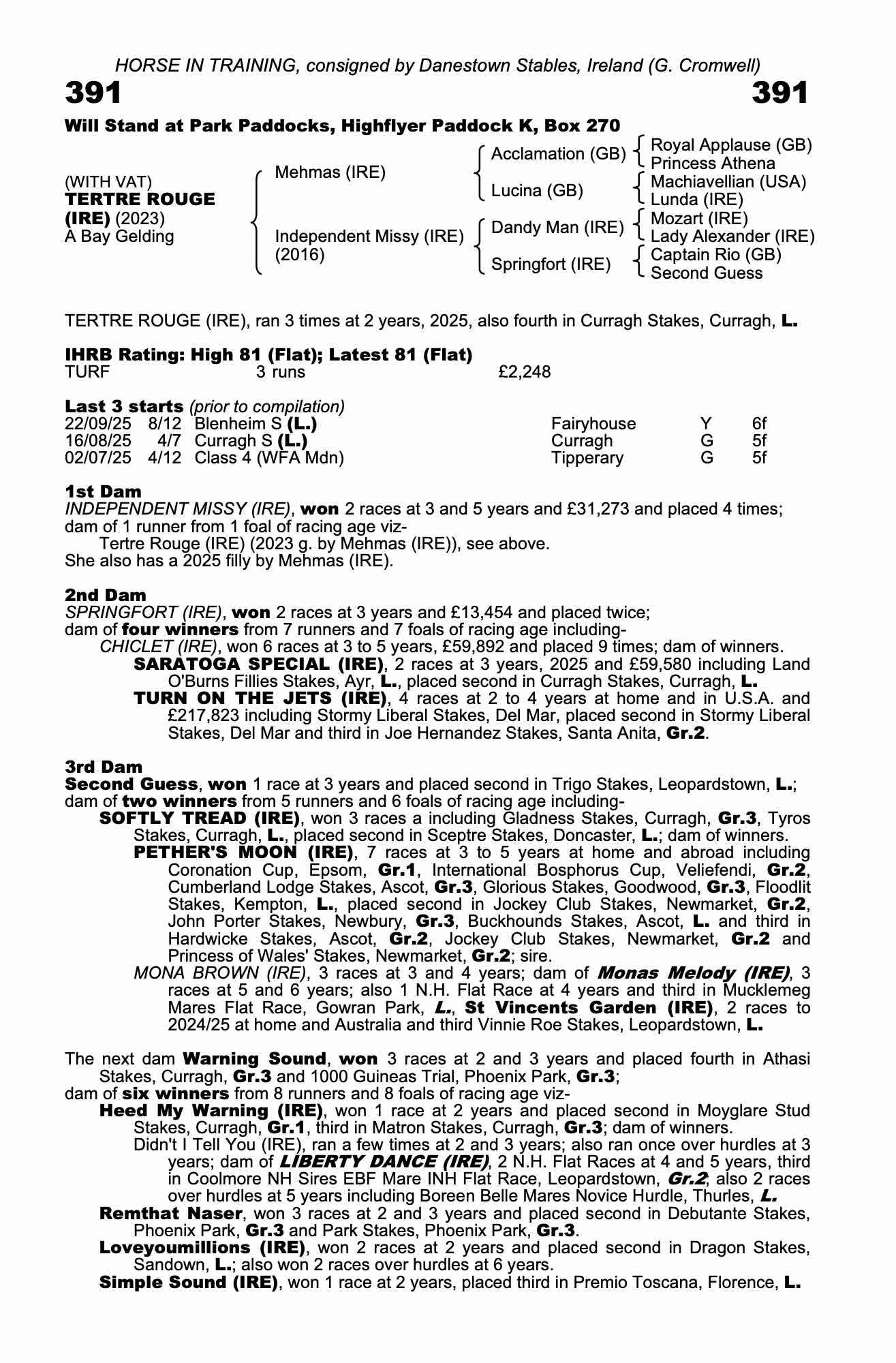 TERTRE ROUGE (IRE), placed once at 2 years, 2025.