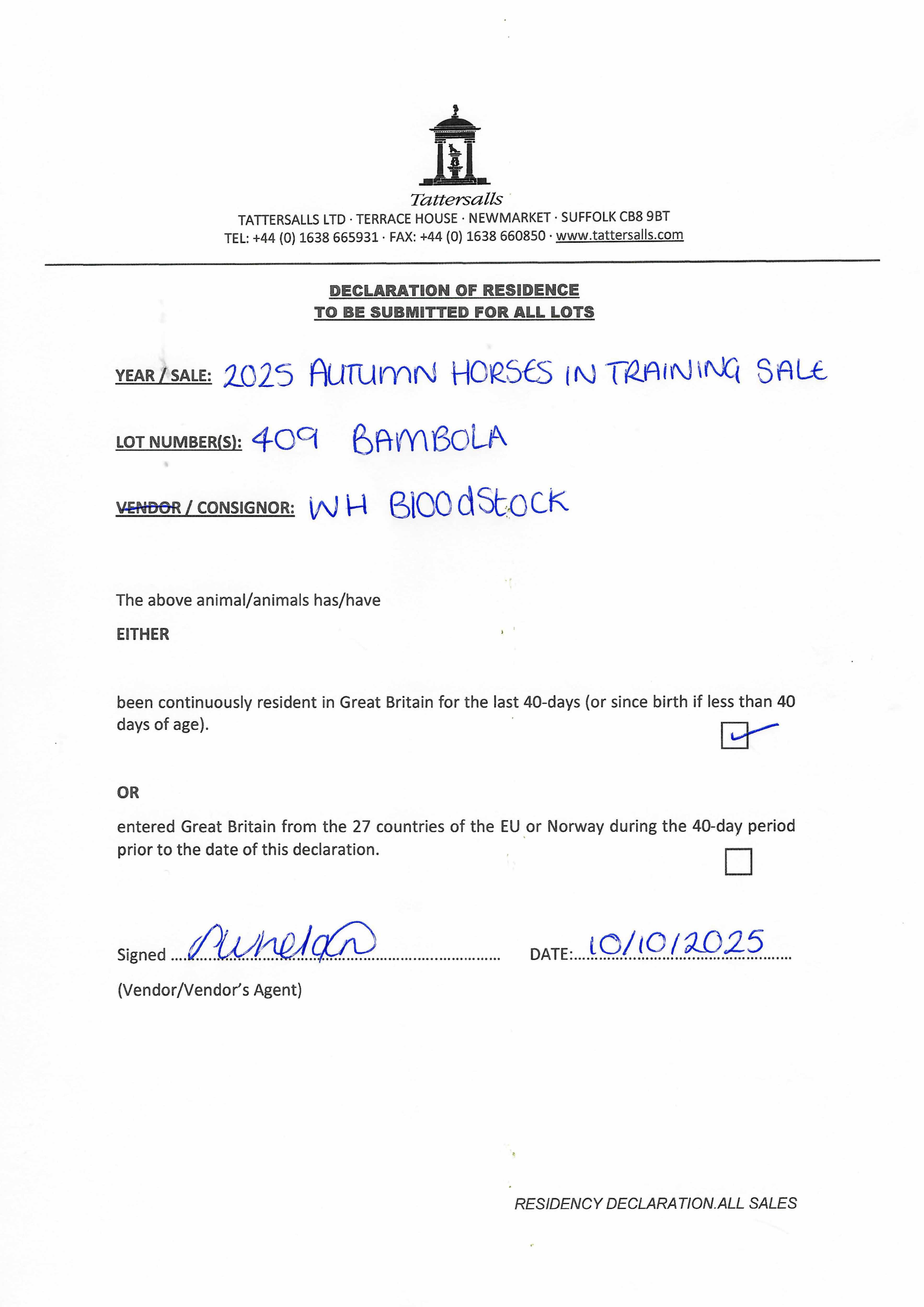 Consignor: WH Bloodstock