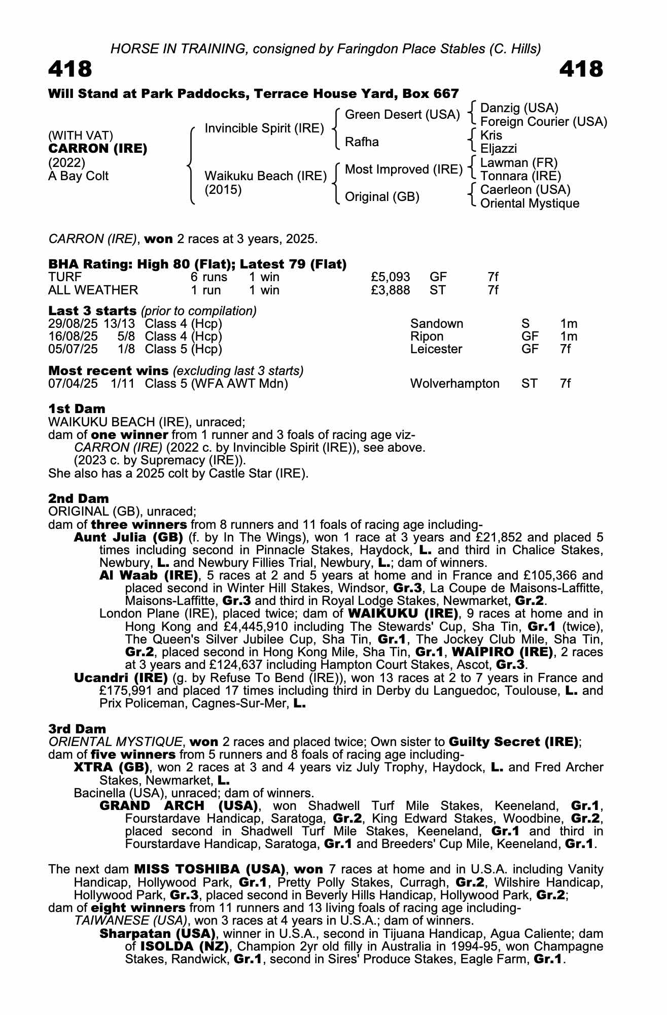 Consignor: Faringdon Place Stables (C. Hills)