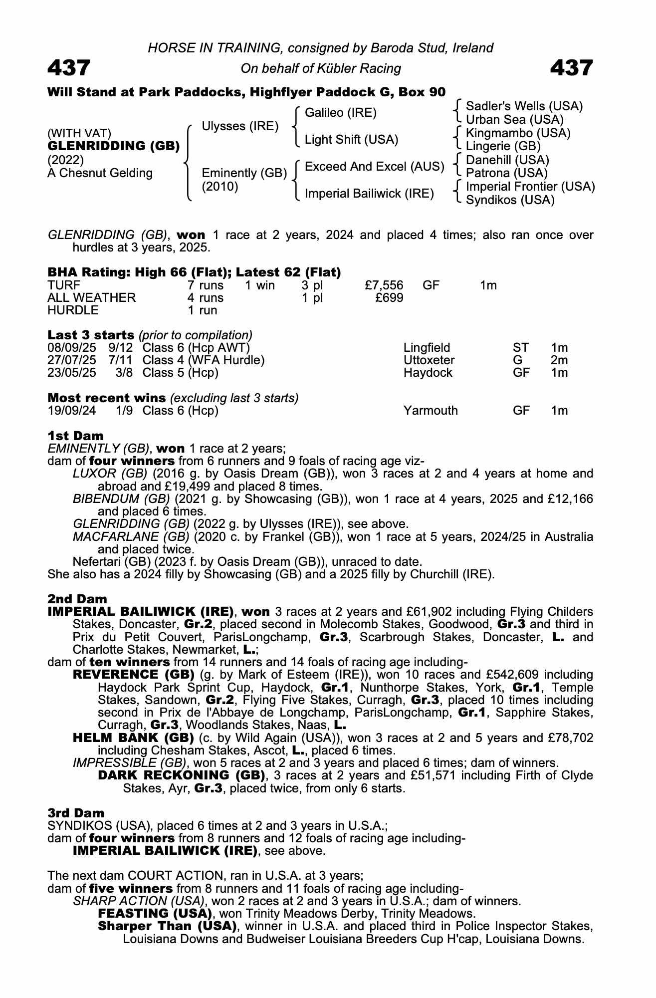 Guineas Horses in Training Sale 2025 lot 1 Bibendum (GB) (G. by Showcasing (GB)), Mayflower Stables (J. Macey)=>Vendor 4,000 gns