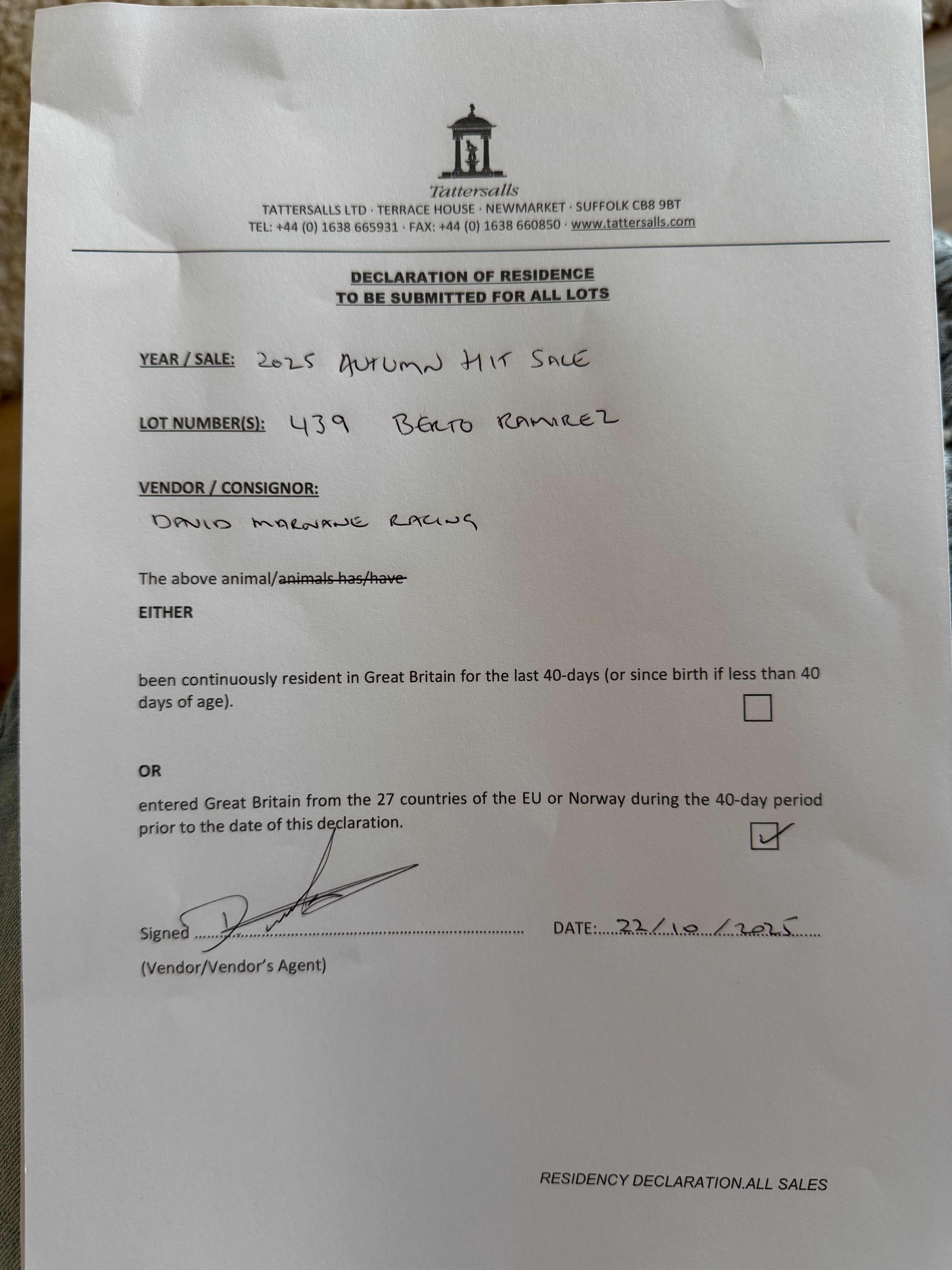 Consignor: David Marnane Racing, Ireland