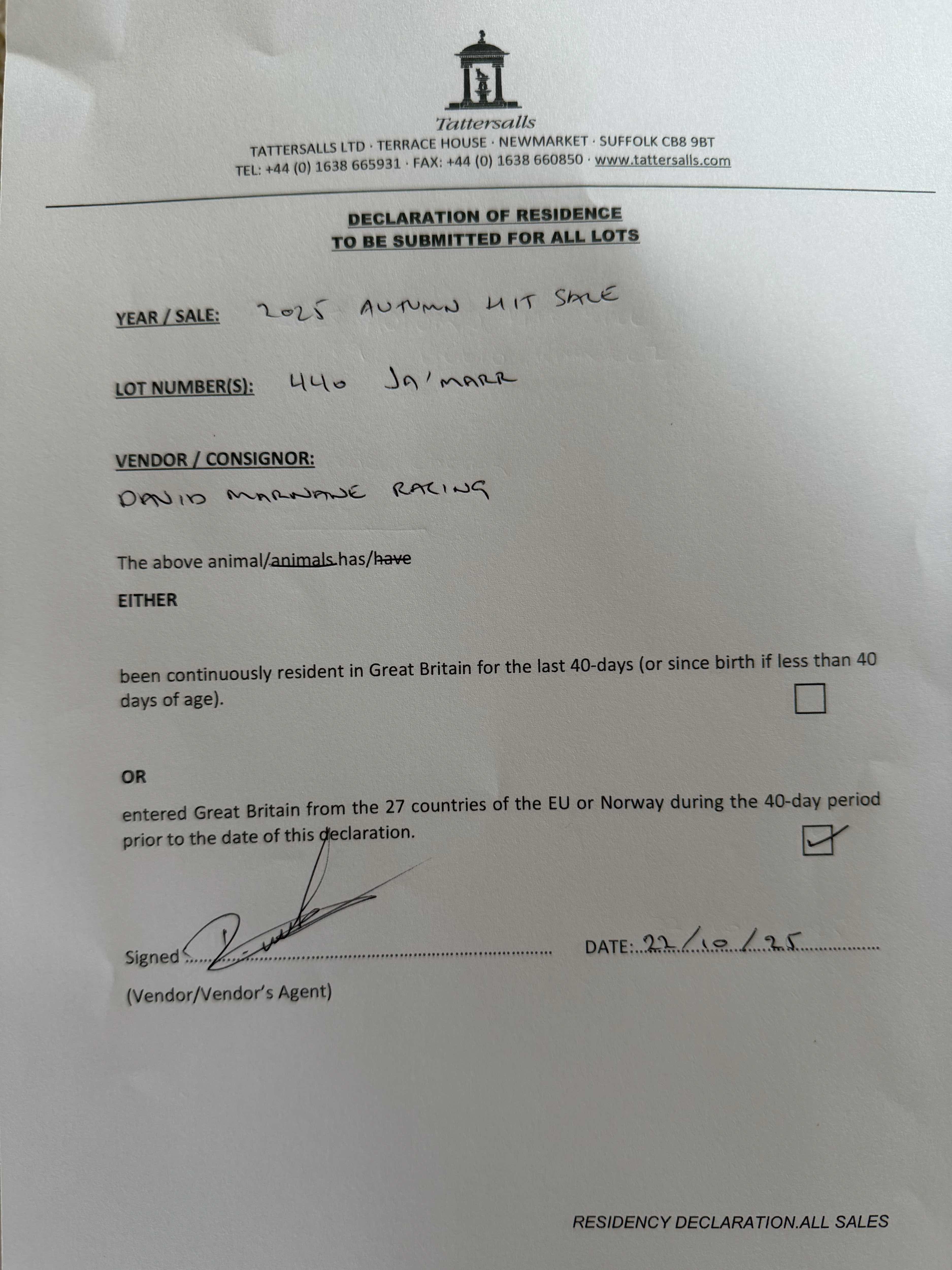 Consignor: David Marnane Racing, Ireland