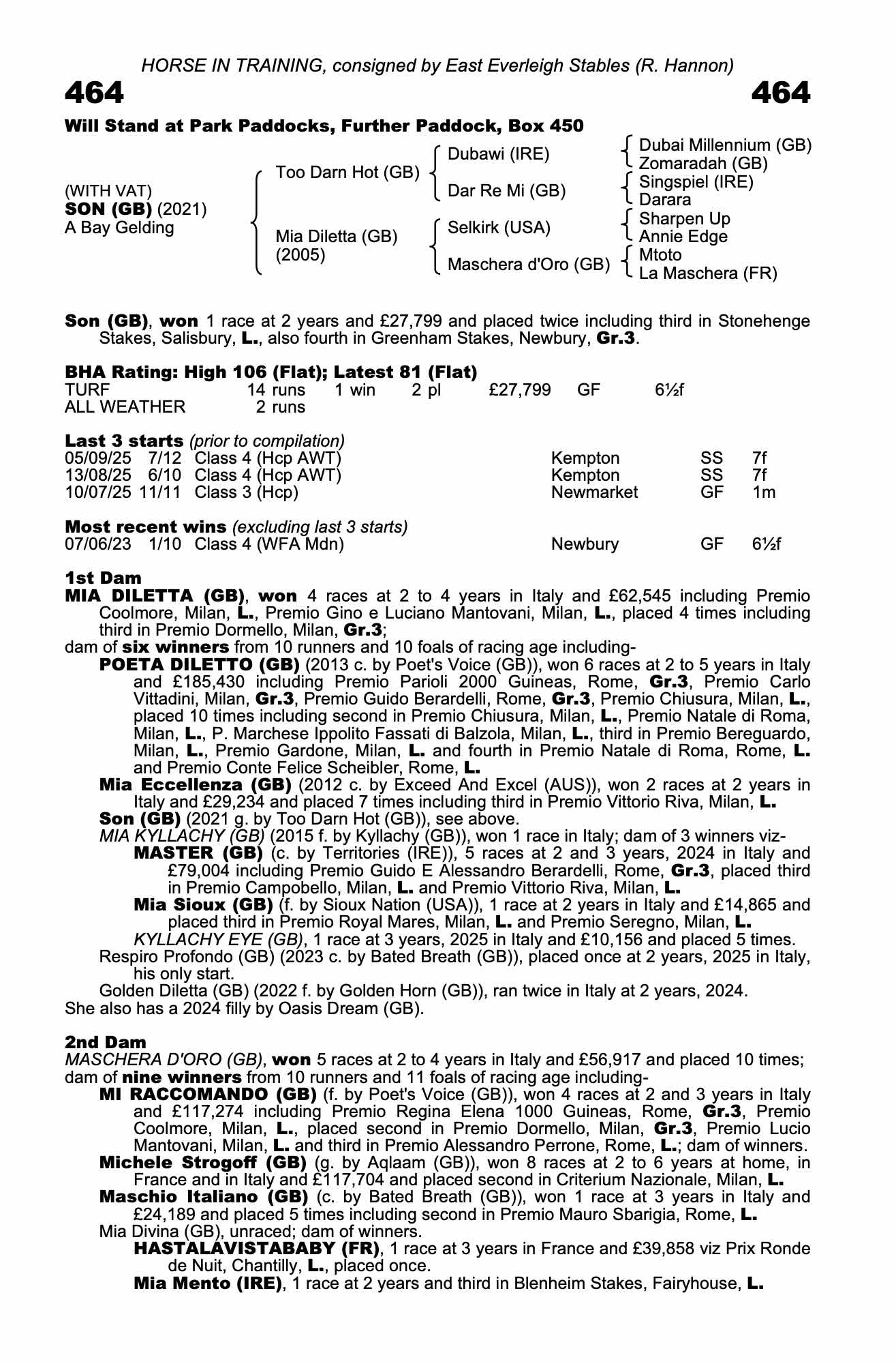 July Sale 2017 lot 847 Poeta Diletto (GB) (C. by Poet's Voice (GB)), Prestige Place (M. Botti)=>Lot Not Sold 28,000 gns