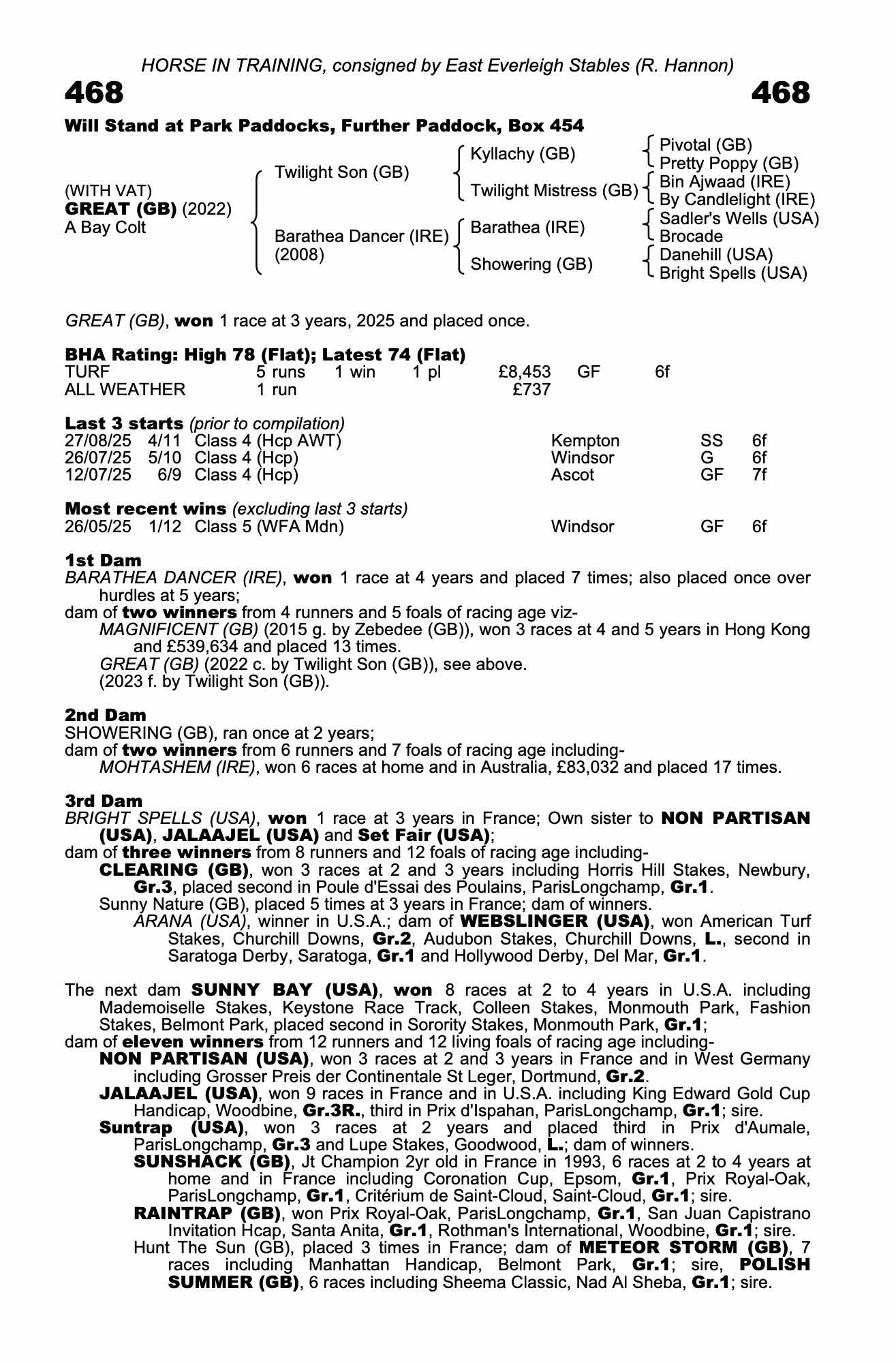 Consignor: East Everleigh Stables (R. Hannon)