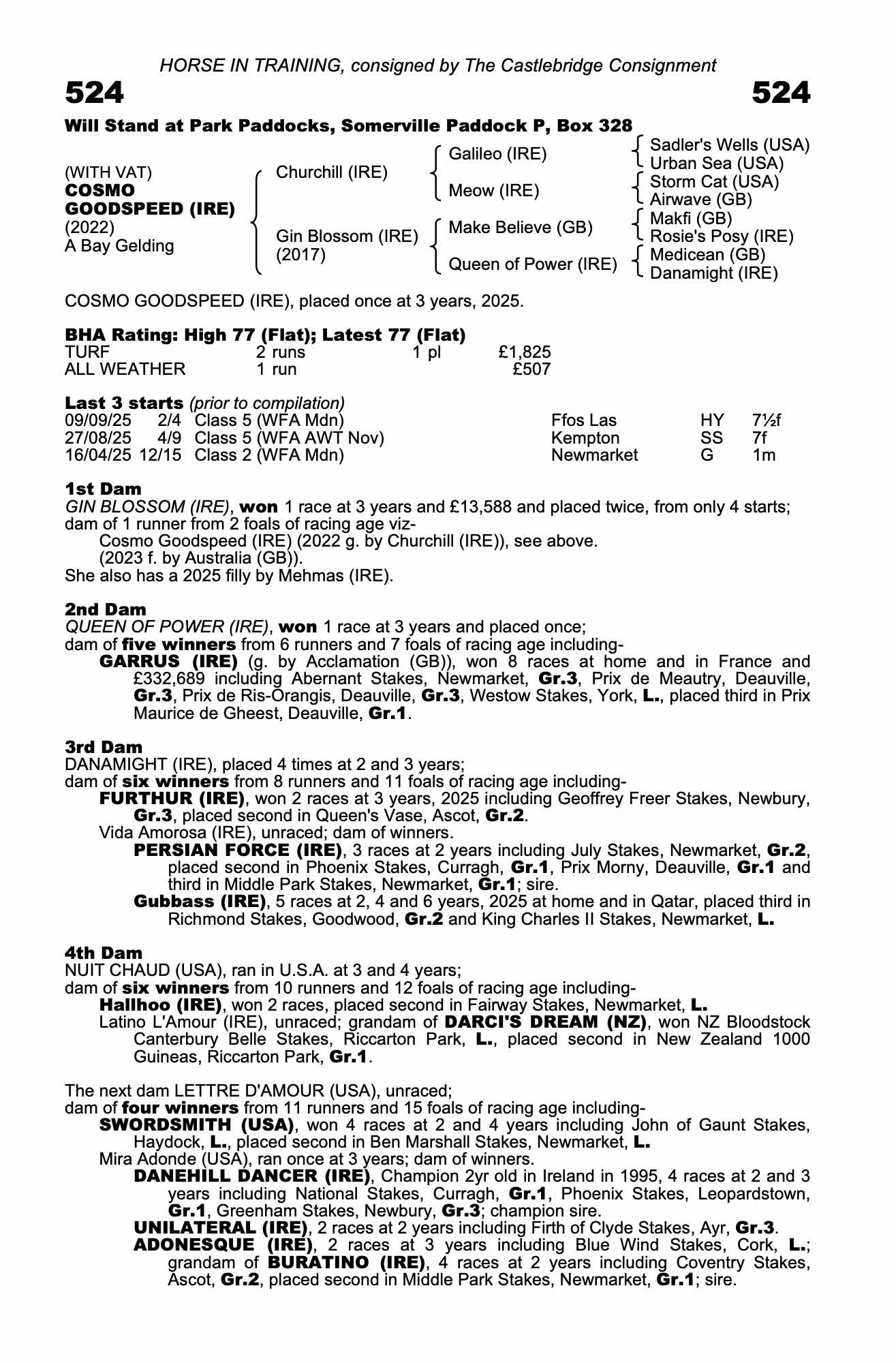 Friday 10 October:  COSMO GOODSPEED (IRE), placed twice at 3 years, 2025.