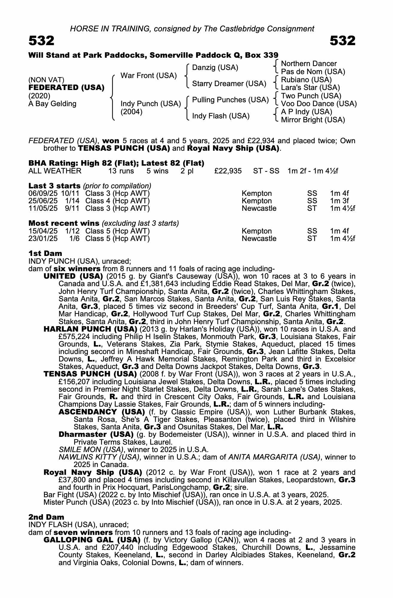 BHA Rating: High 86 (Flat); Latest 86 (Flat)13/10/25 – 1st of 9 in 1m 3f Class 4 (Hcp AWT), Kempton (ST)