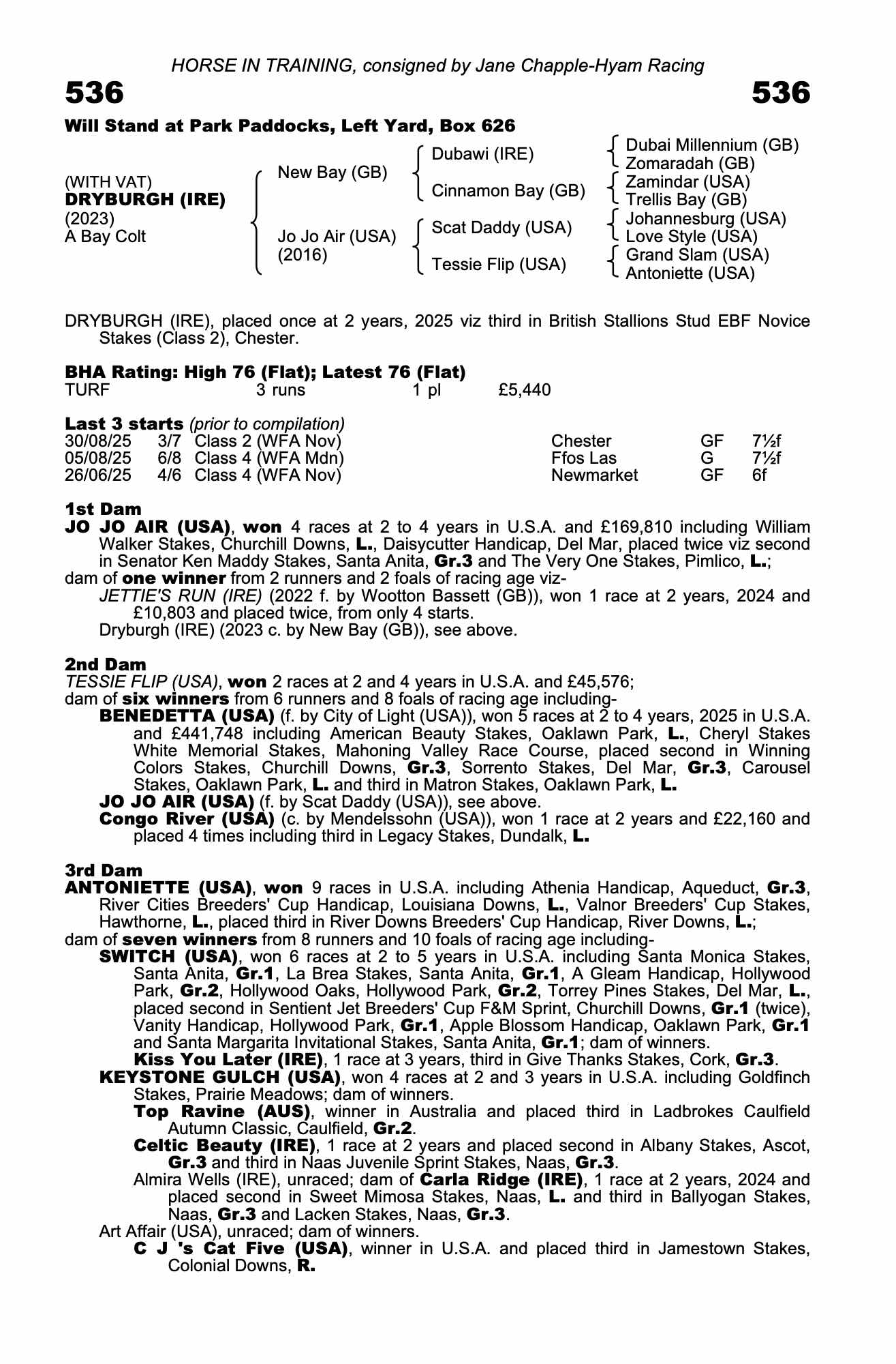 DRYBURGH (IRE), placed twice at 2 years, 2025.