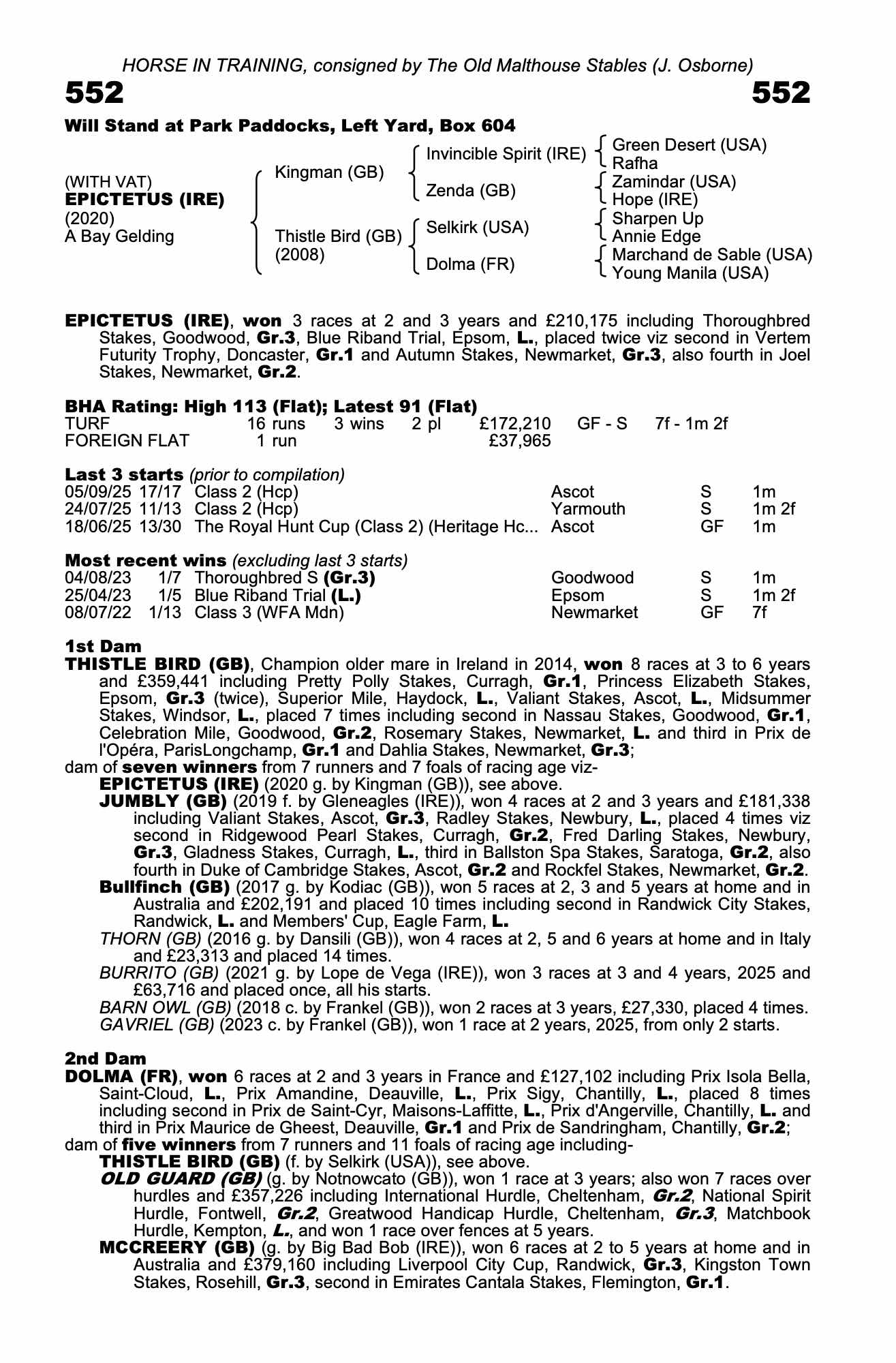 Consignor: The Old Malthouse Stables (J. Osborne)