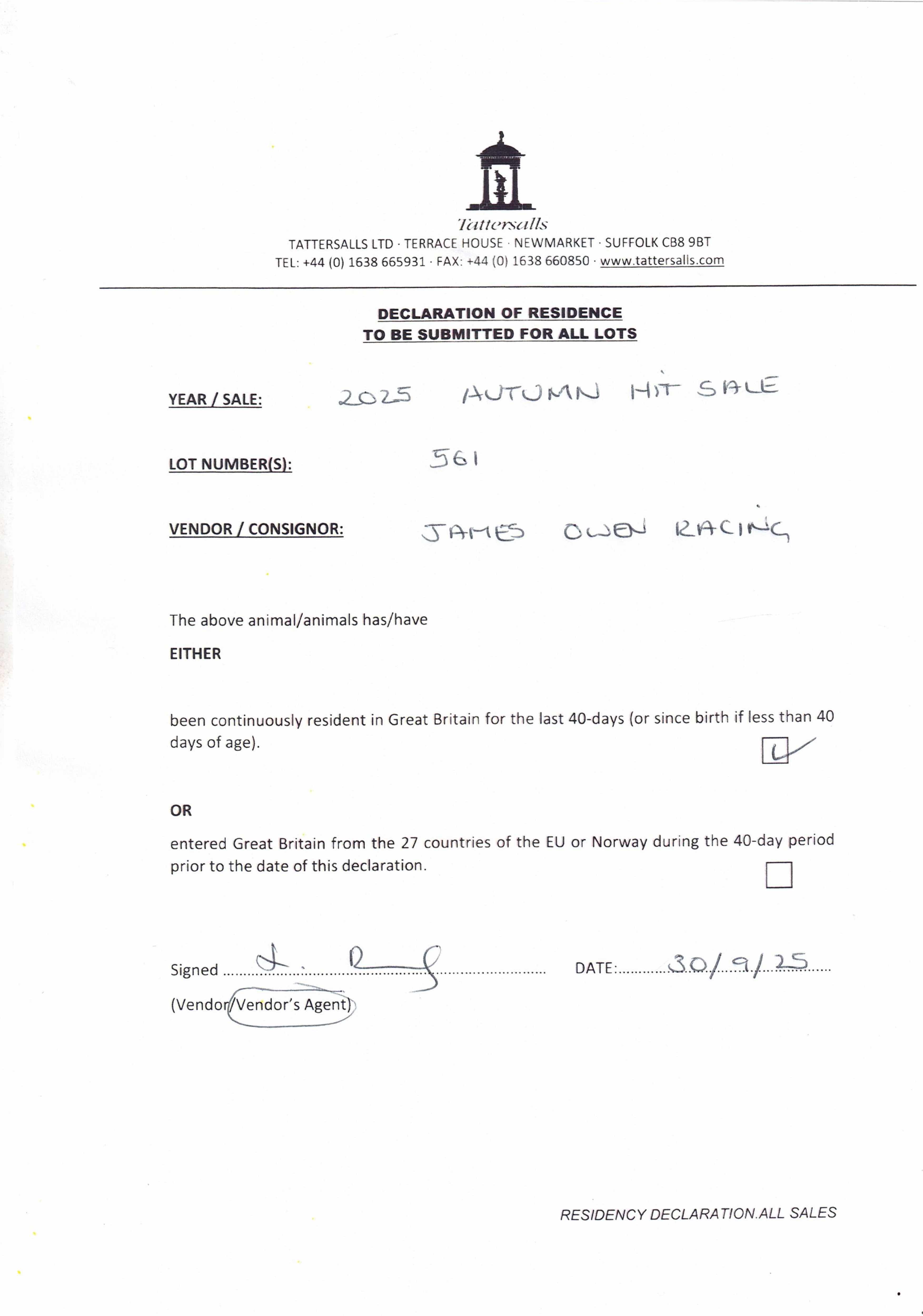 Consignor: James Owen Racing