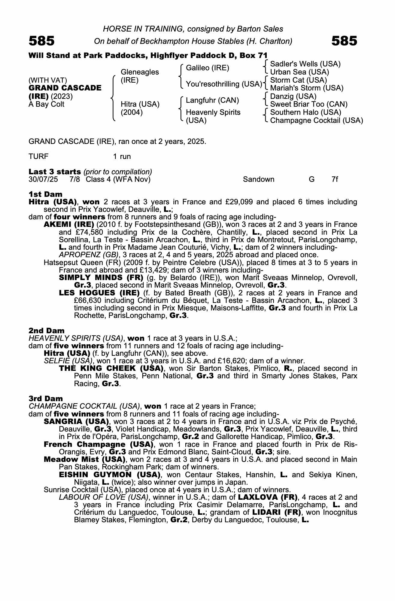 Online Sale - 12th February 2025 lot 109 Dance On The Hill (IRE) (M. by Danehill Dancer (IRE)), Kirtlington Stud=>Lot Not Sold 2,000 gns