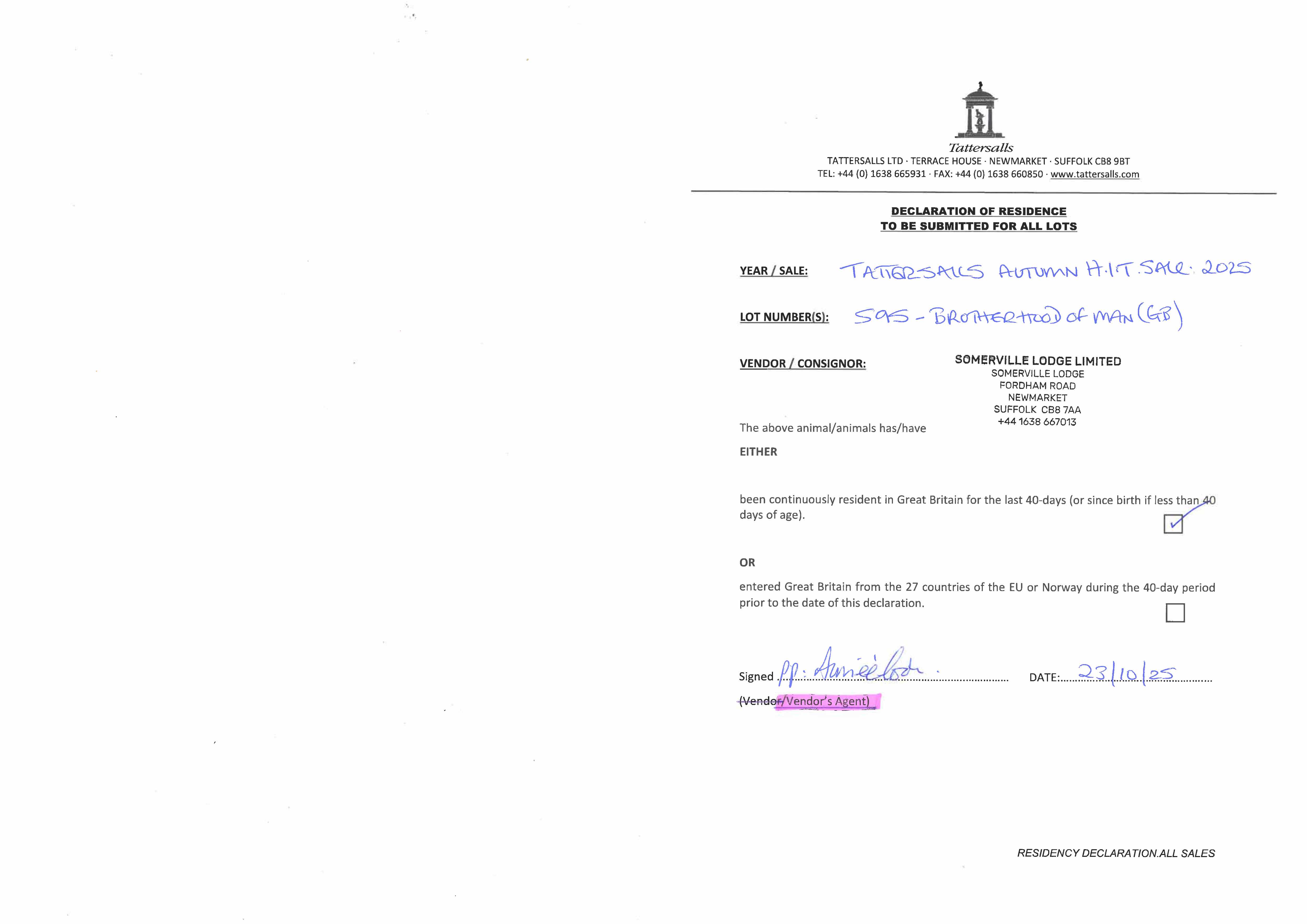Somerville Lodge Ltd. (W. Haggas), Agent