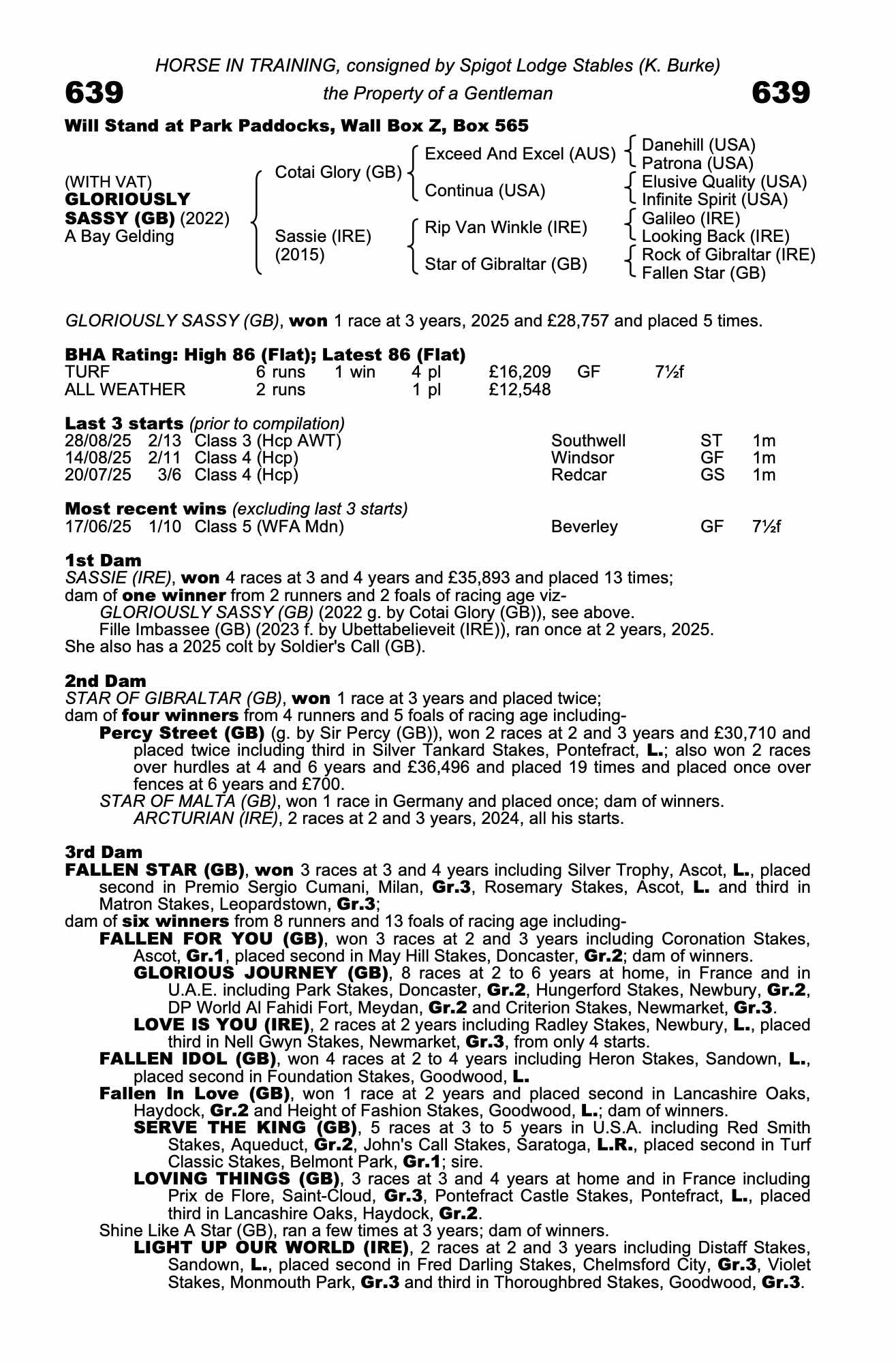 Consignor: Spigot Lodge Stables (K. Burke)