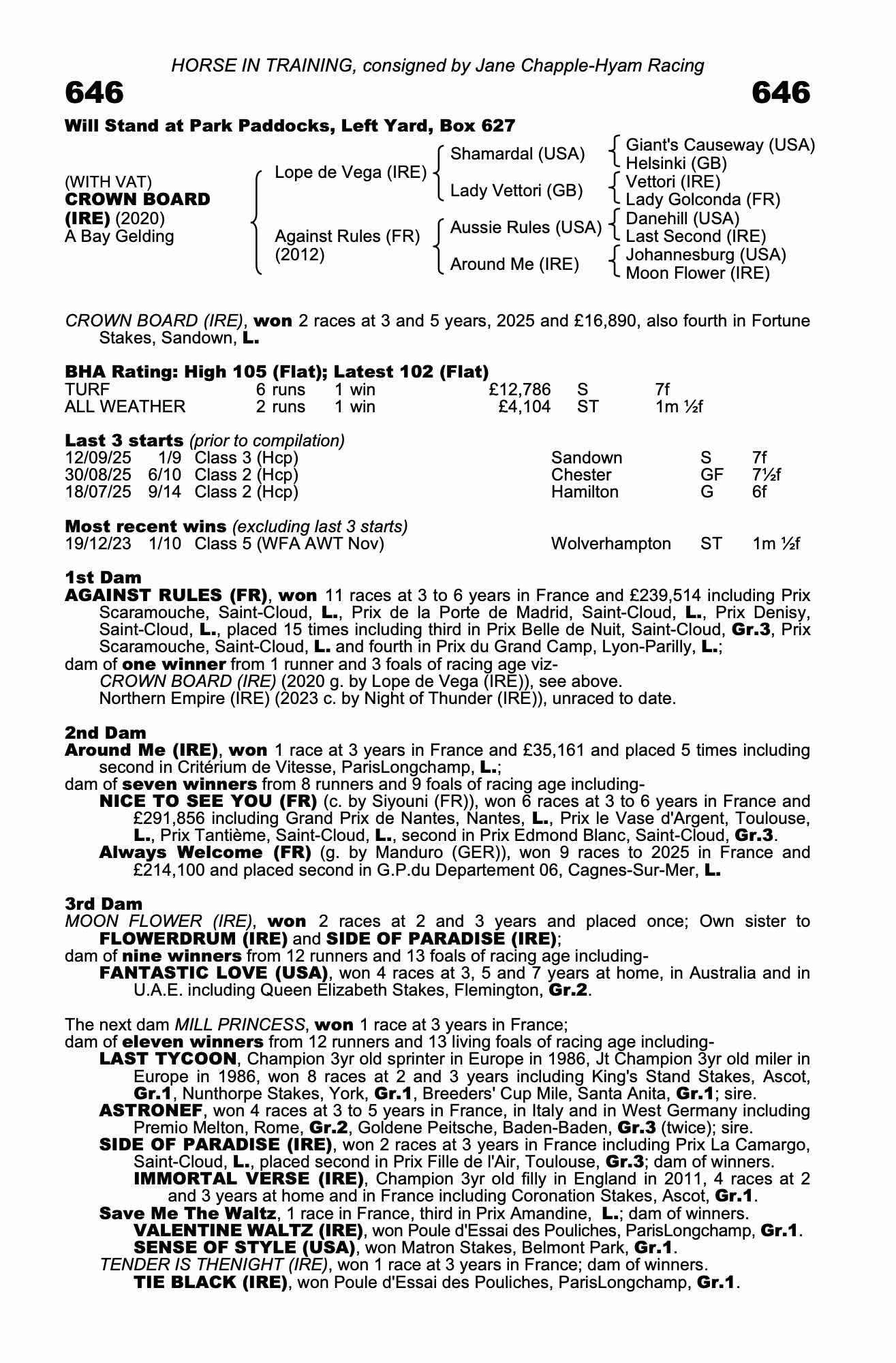 Consignor: Jane Chapple-Hyam Racing