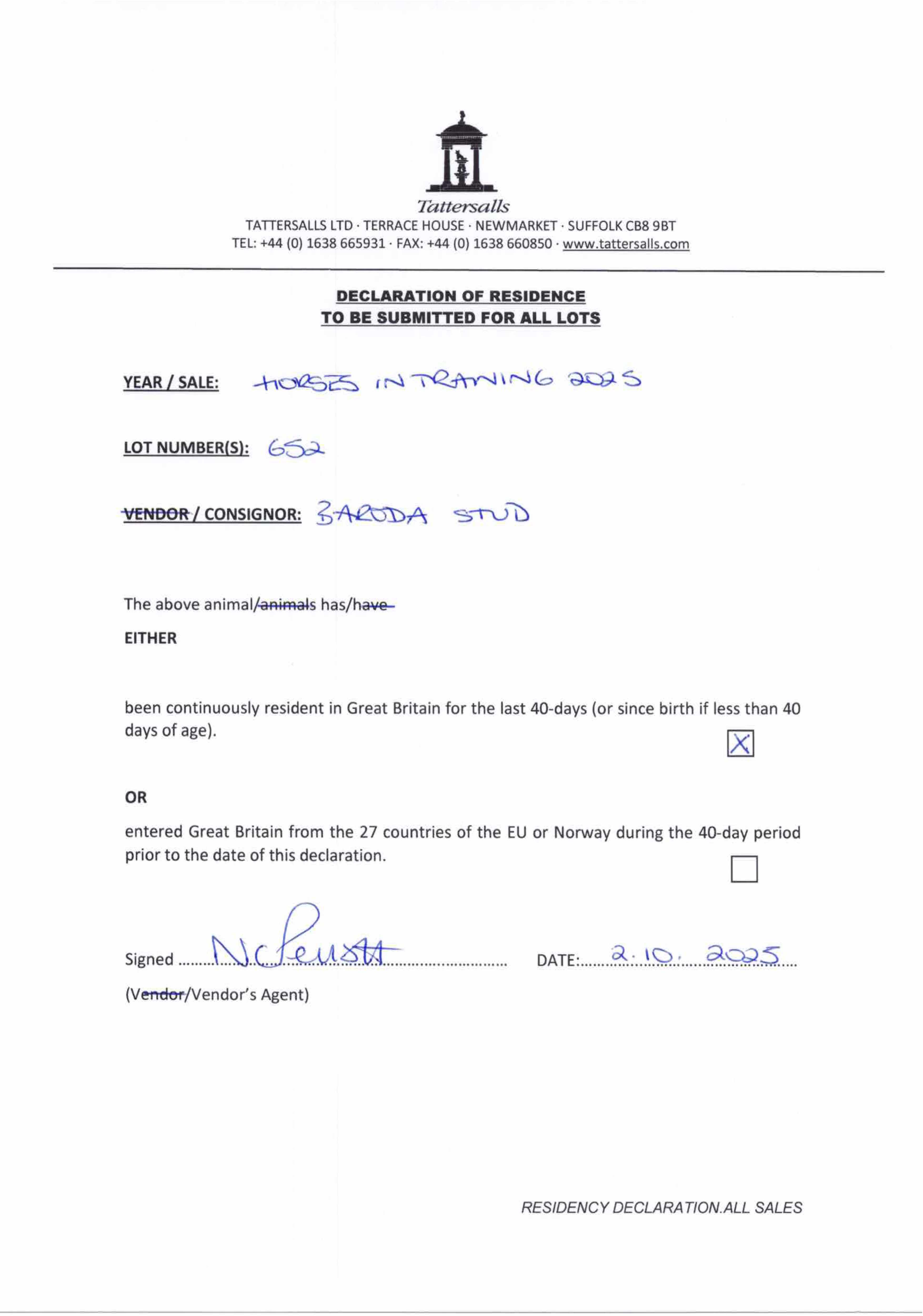 Autumn Horses In Training Sale 2024 lot 318, Baroda Stud, Ireland=>Vendor 40,000 gns