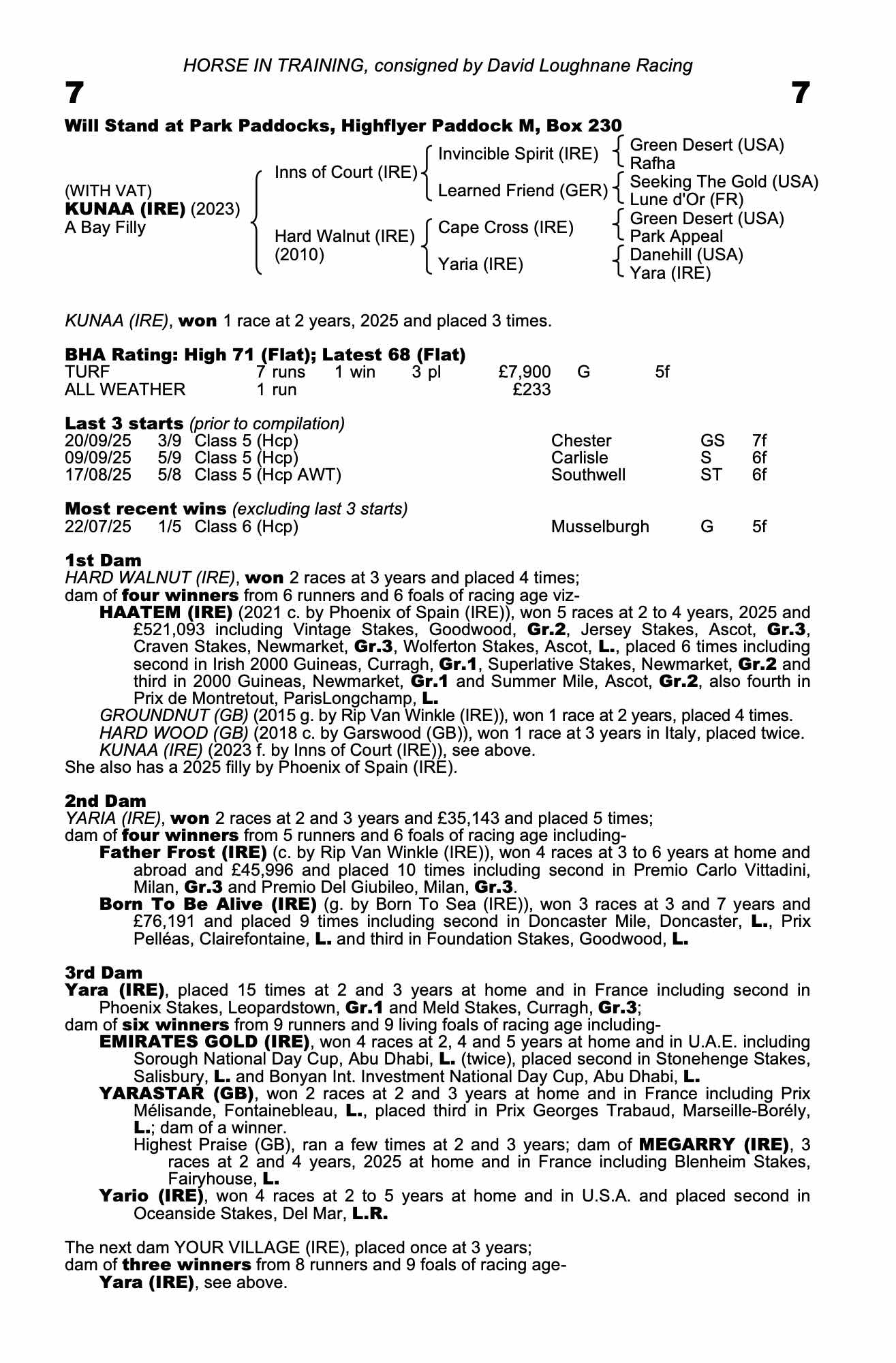 Consignor: David Loughnane Racing