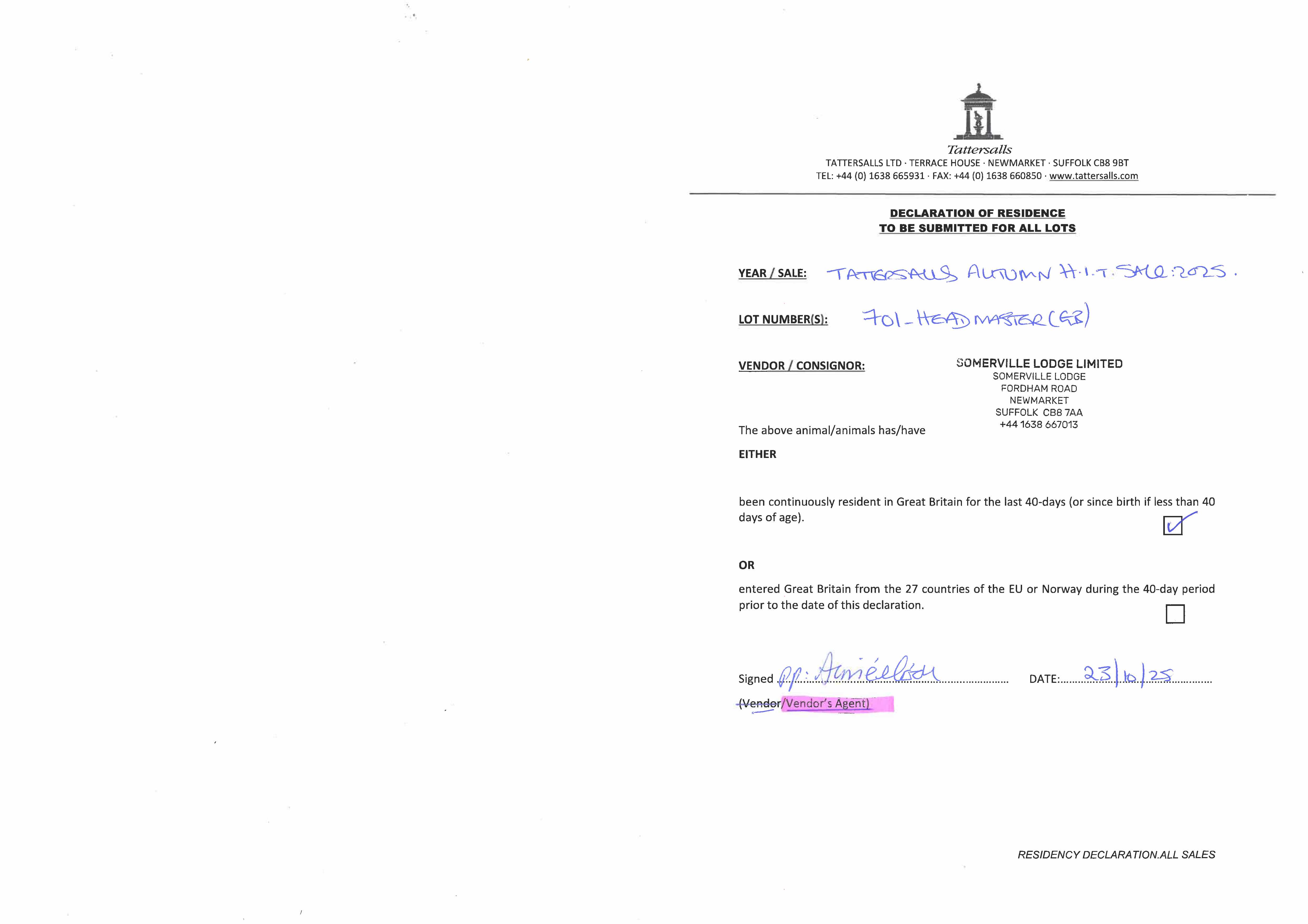 Somerville Lodge Ltd. (W. Haggas), Agent