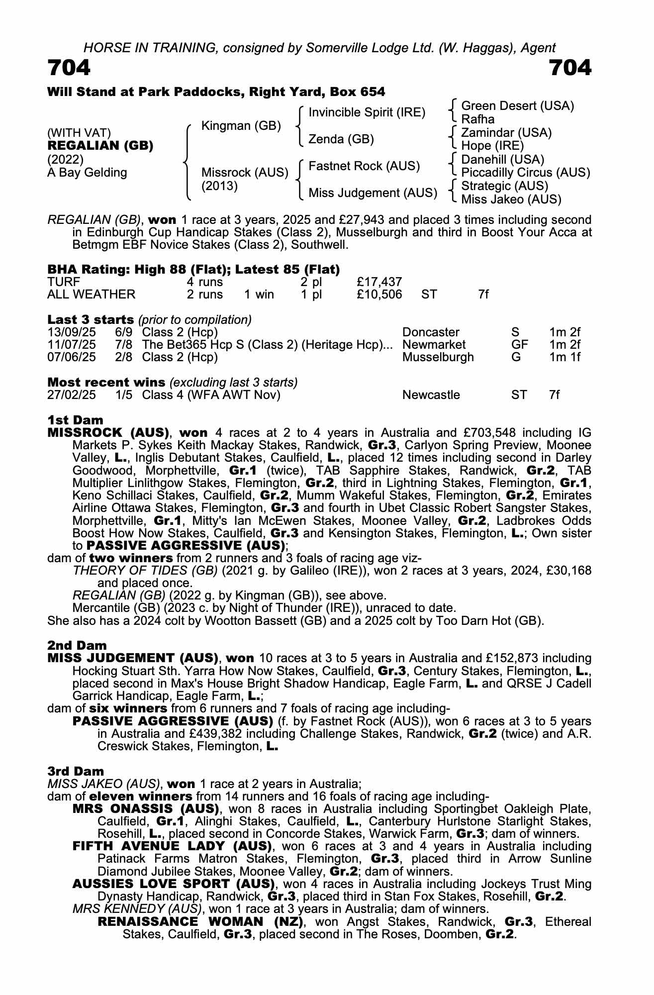 Consignor: Somerville Lodge Ltd. (W. Haggas), Agent