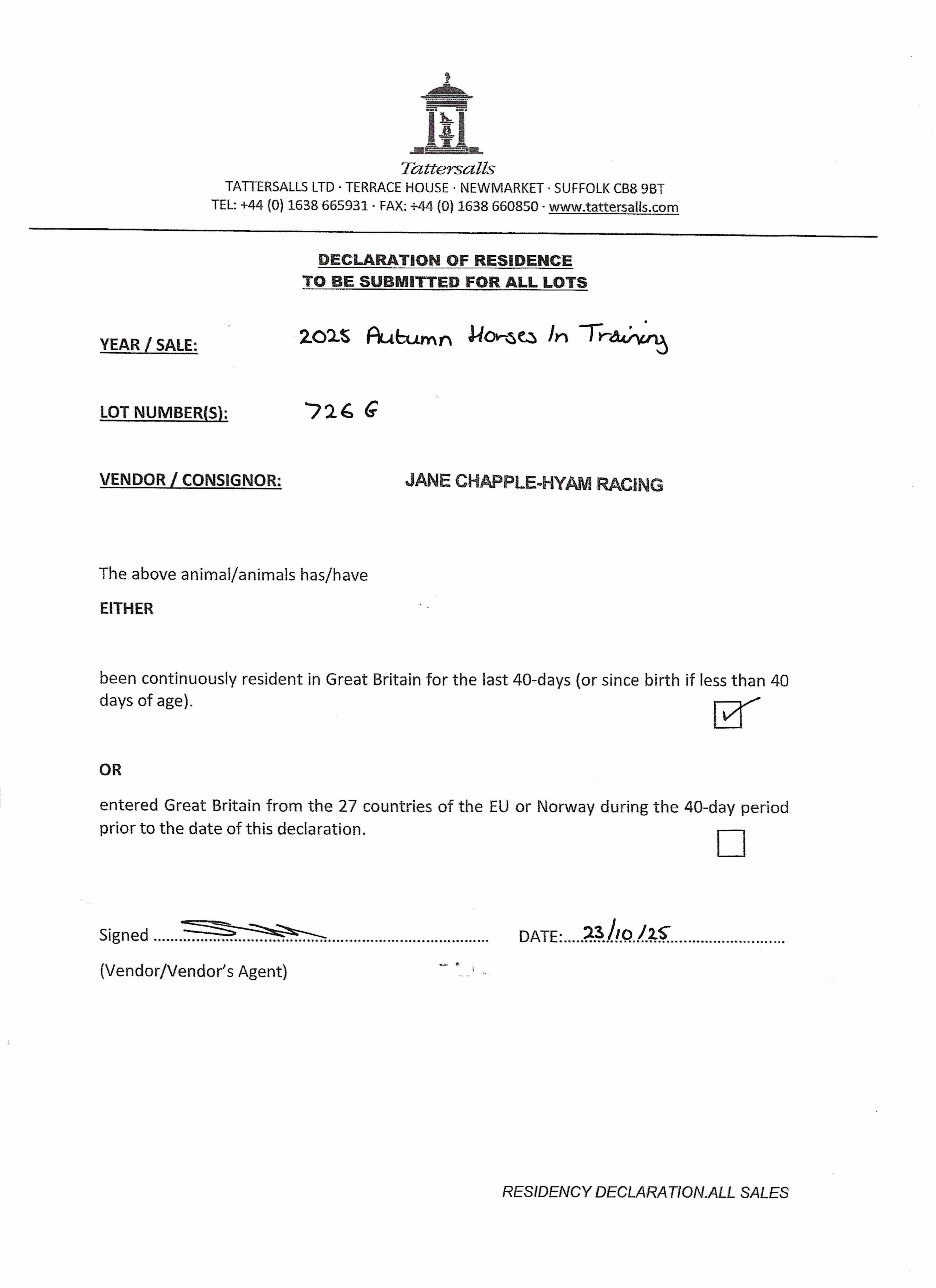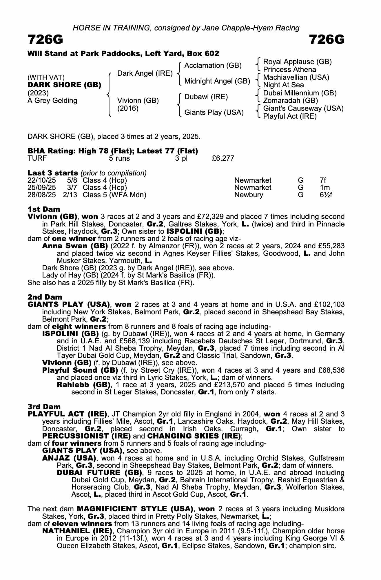Consignor: Jane Chapple-Hyam Racing