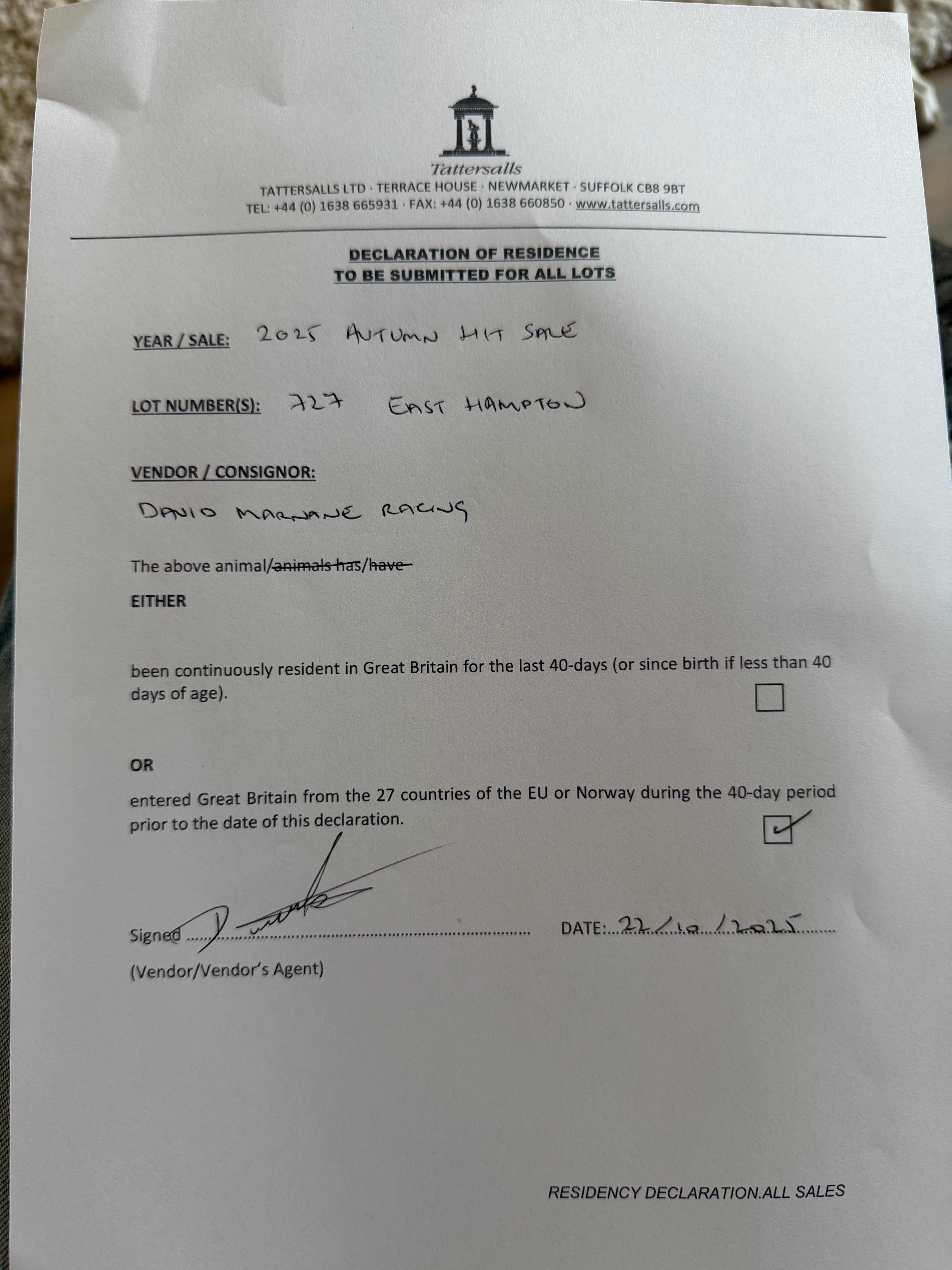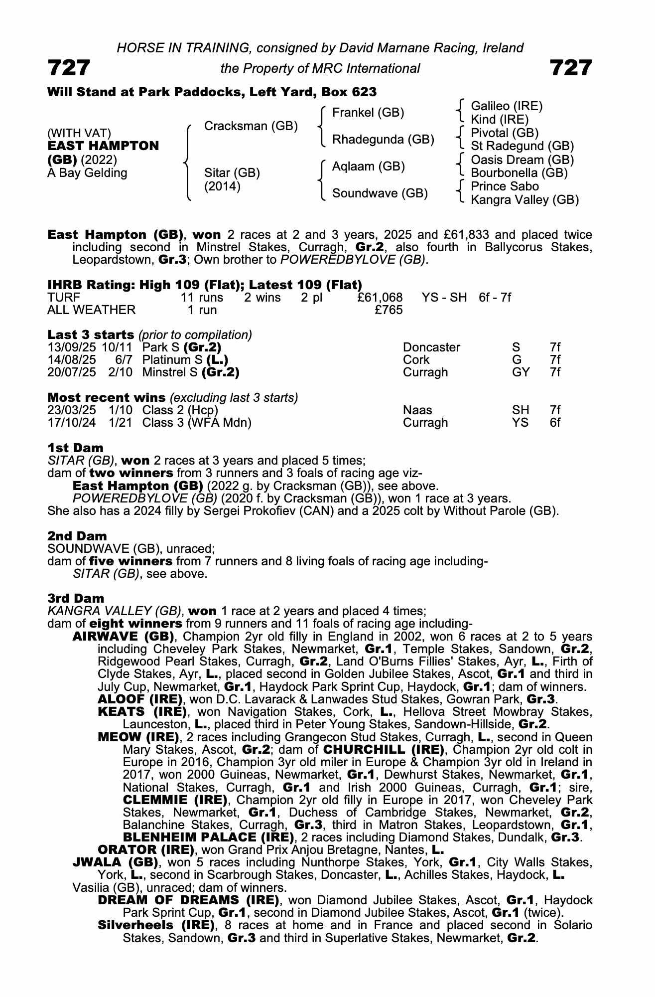 Consignor: David Marnane Racing, Ireland