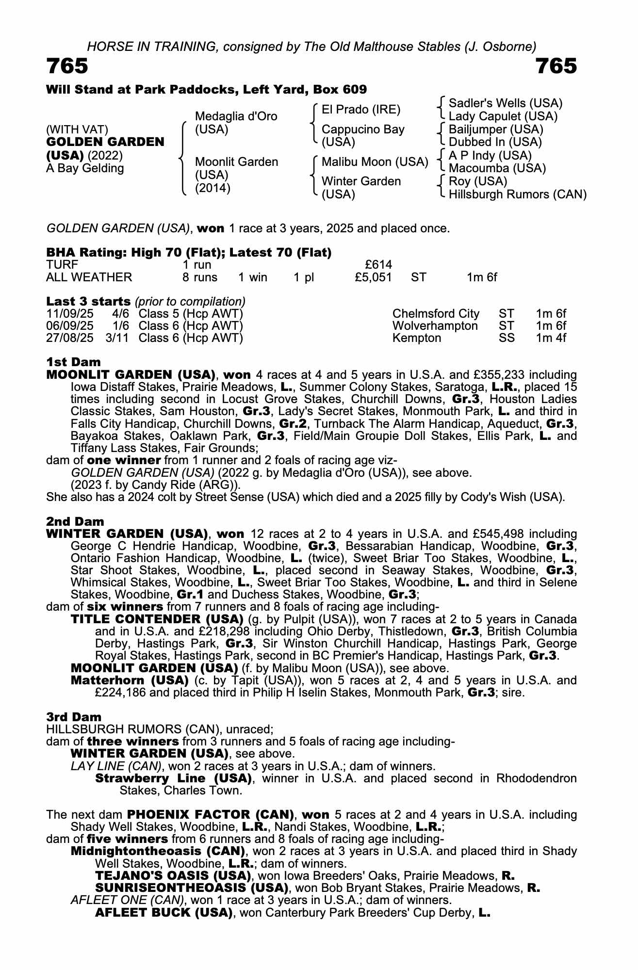 Consignor: The Old Malthouse Stables (J. Osborne)