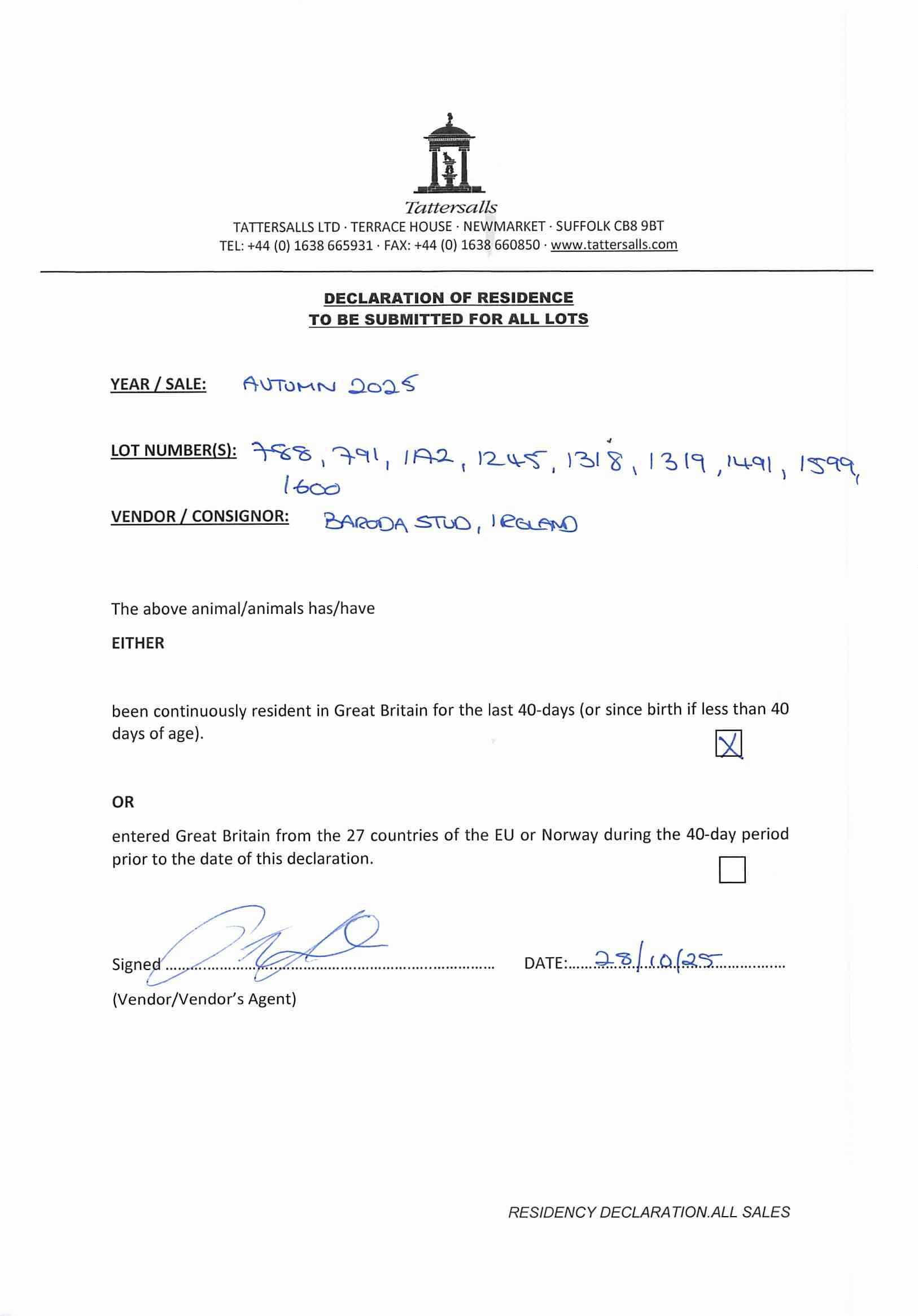Consignor: Baroda Stud, Ireland